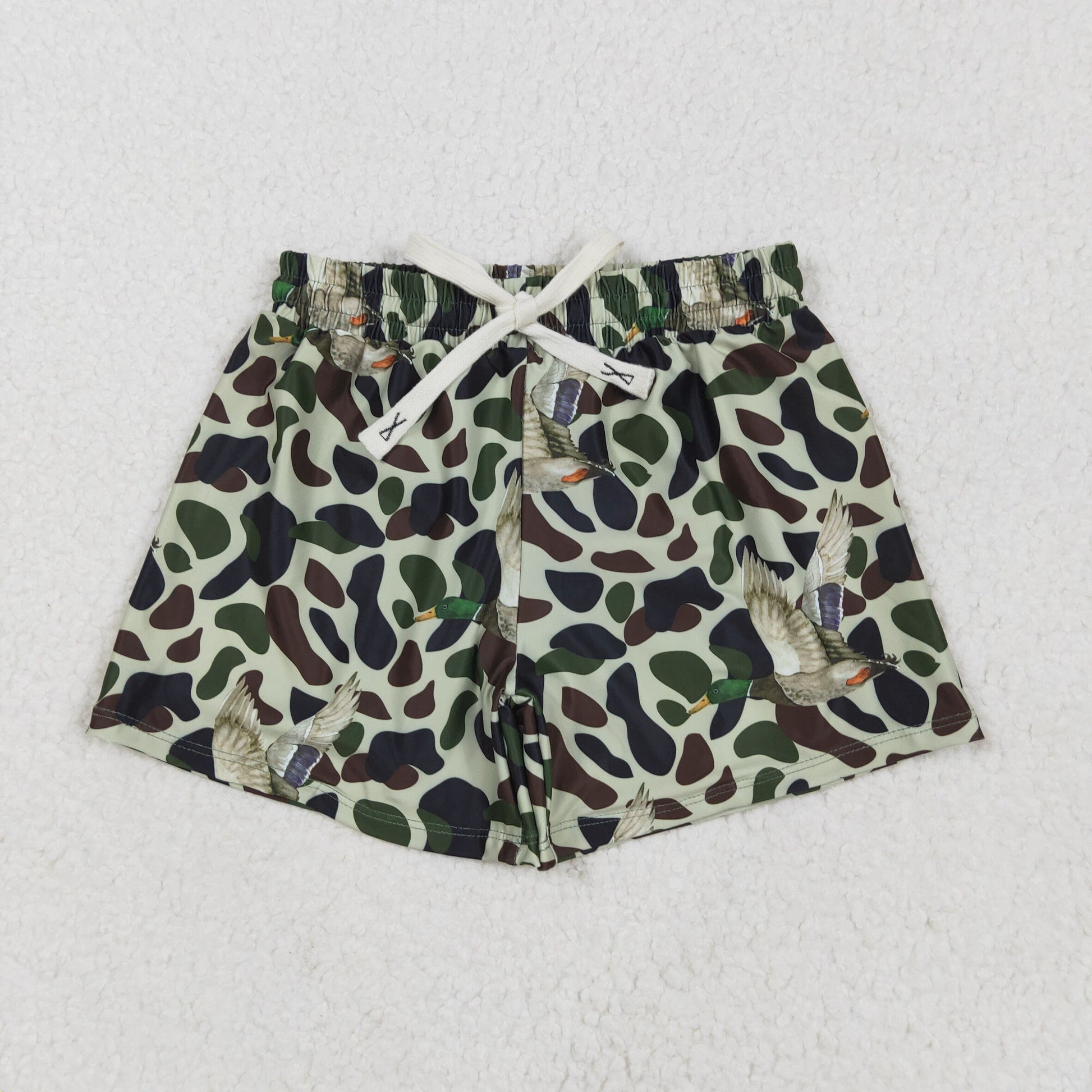 S0469 Duck Green Camo Print Boys Summer Swim Trunks