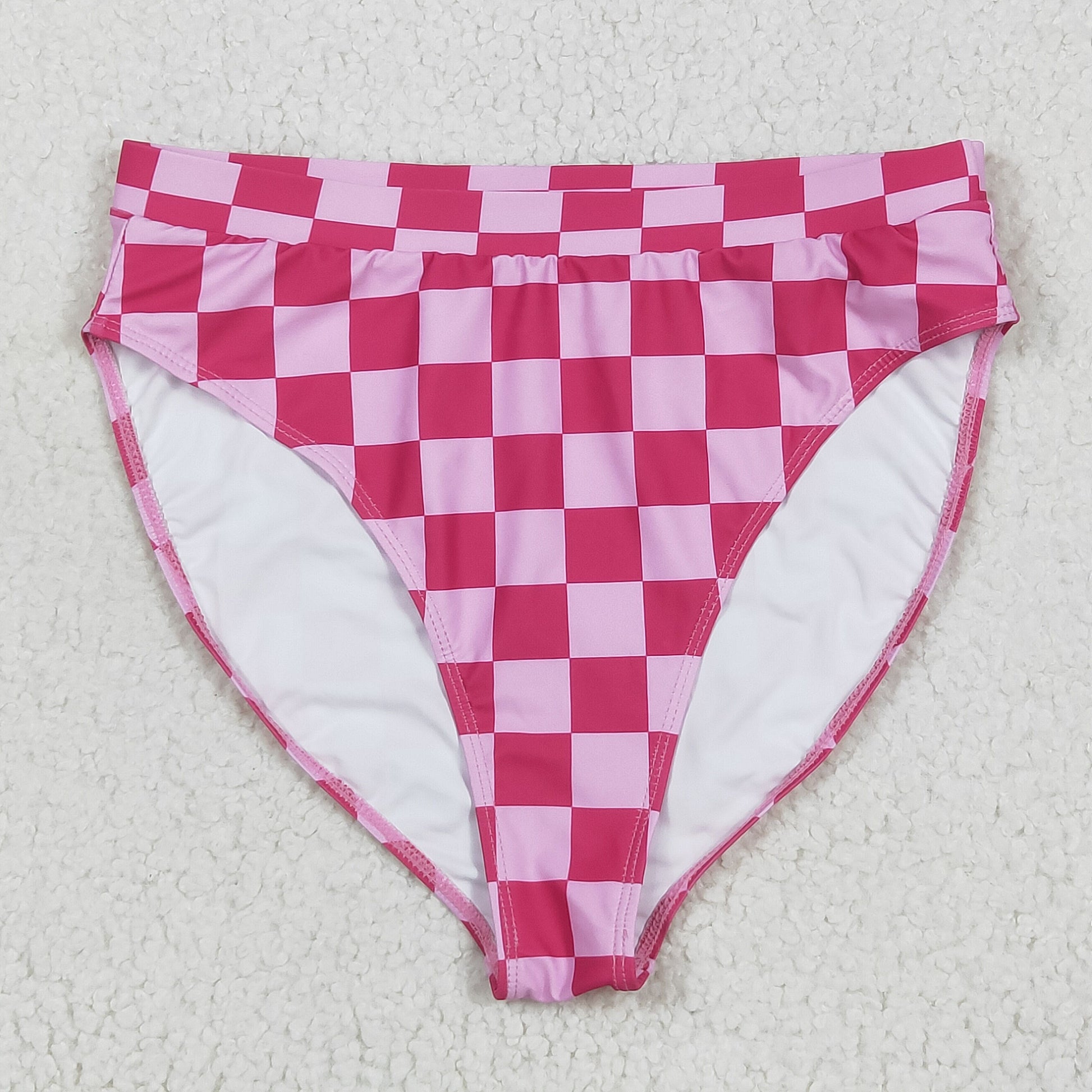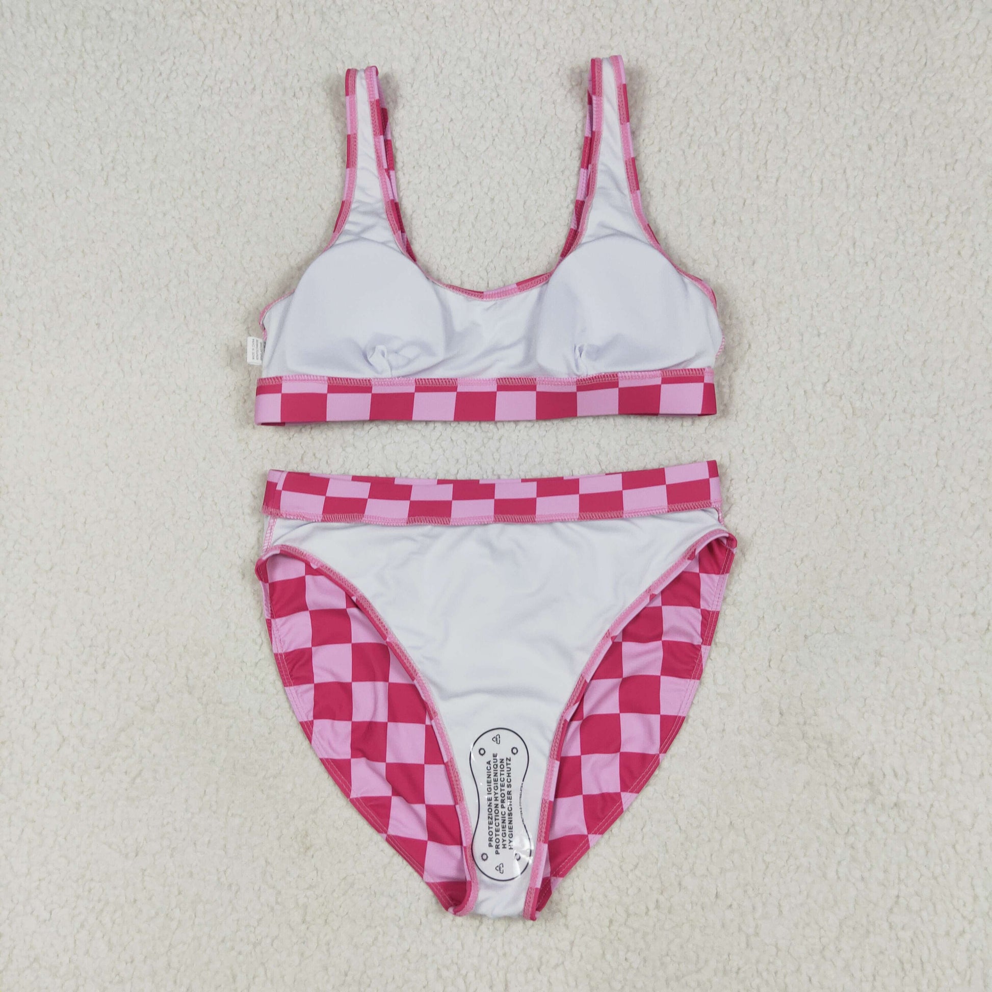 S0559 Adult Pink Plaid Print Woman 2 Pieces Swimsuits