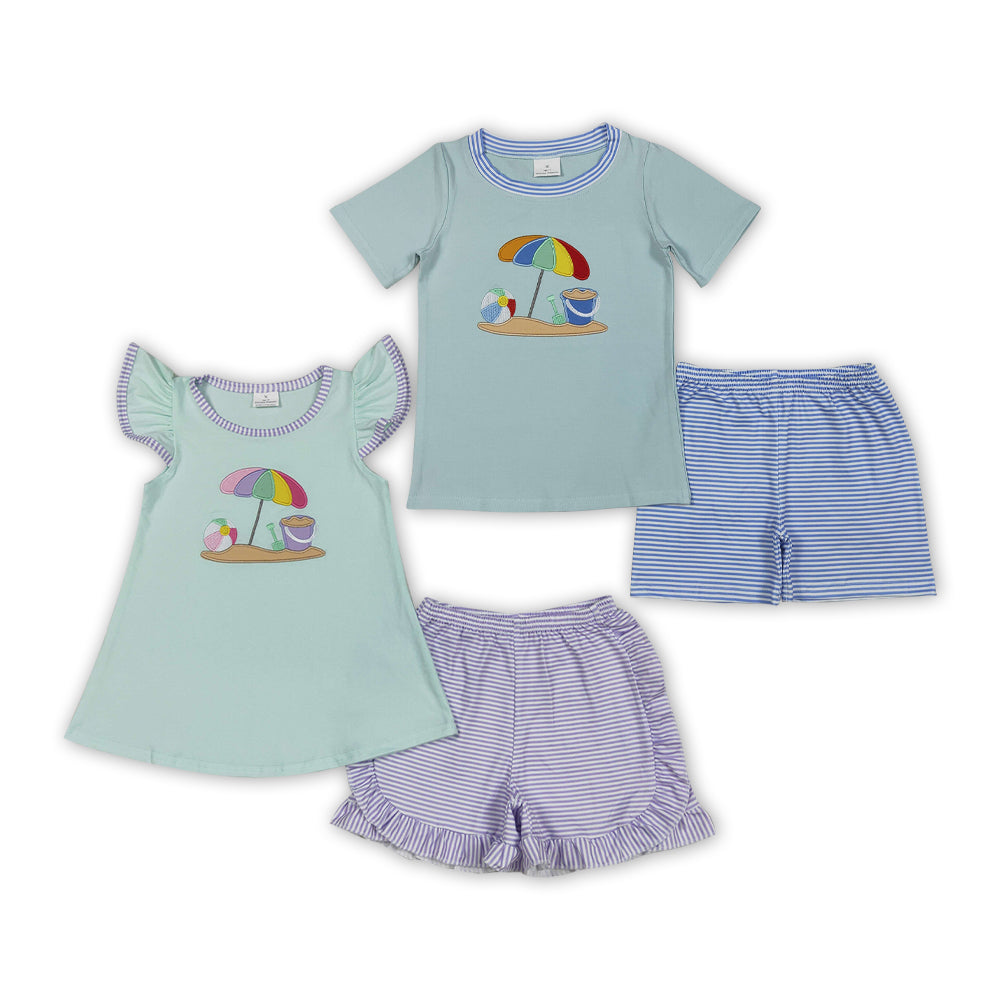 Sandbeach Embroidery Top Purple Shorts Kids Summer Clothes Sibling Wear