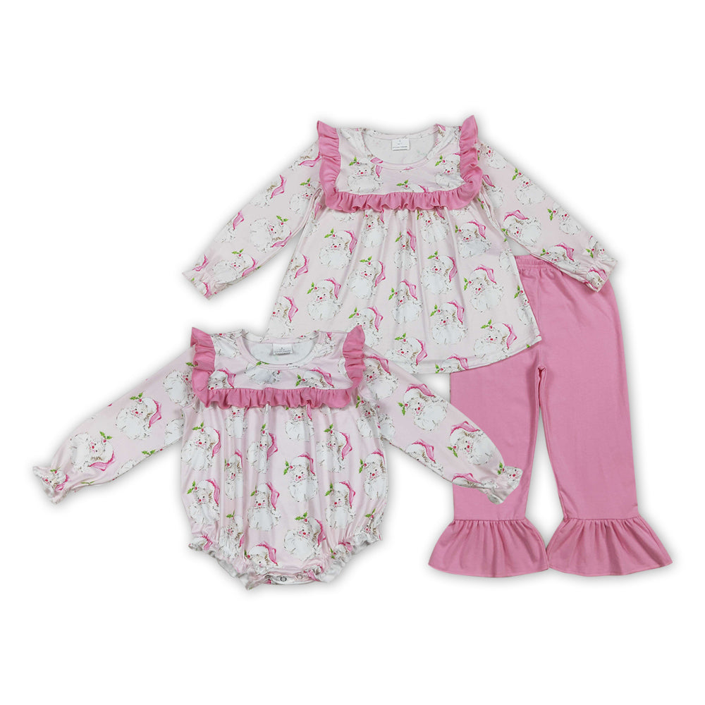 Santa Holly Pink Girls Christmas Clothes Sisters Matching Wear
