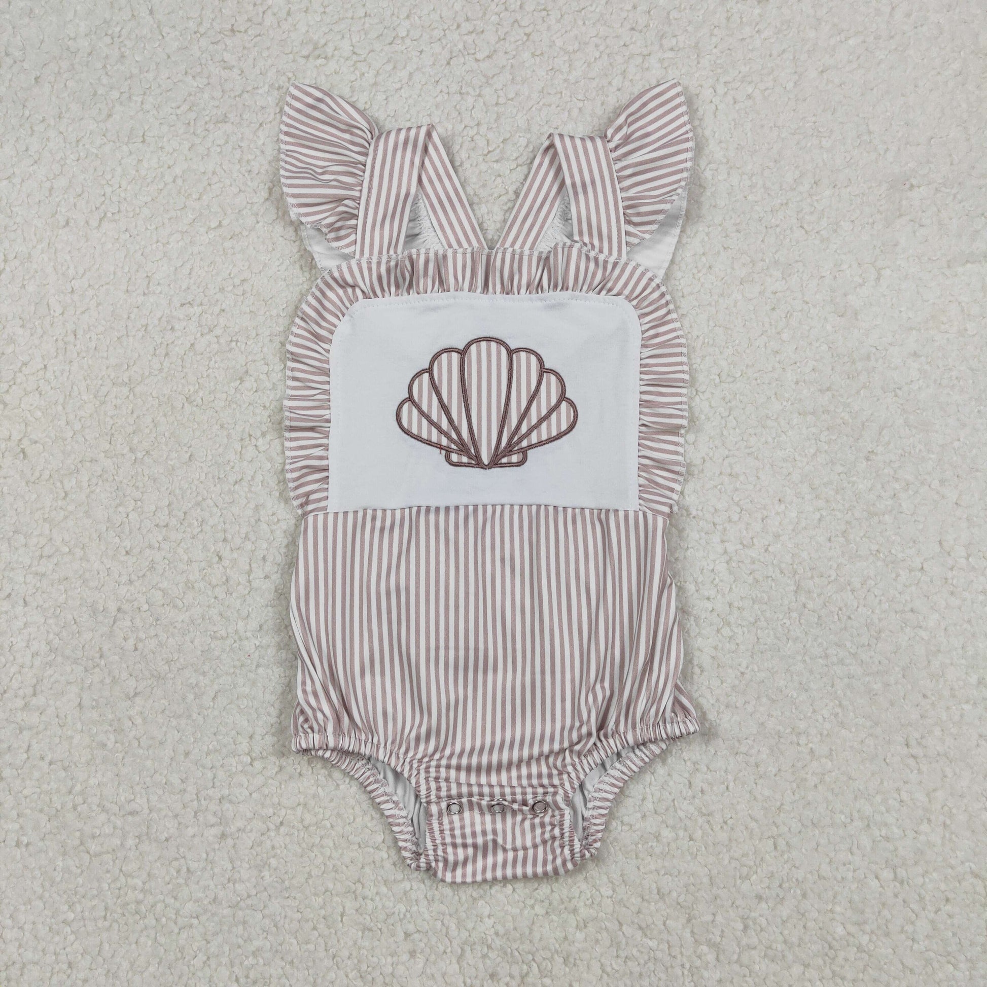 Shell Embroidery Stripes Print Kids Summer Clothes Sibling Matching Wear