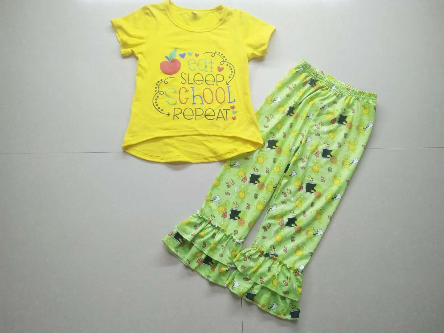 Short sleeve ruffles pants back to school outfits C15-31-1