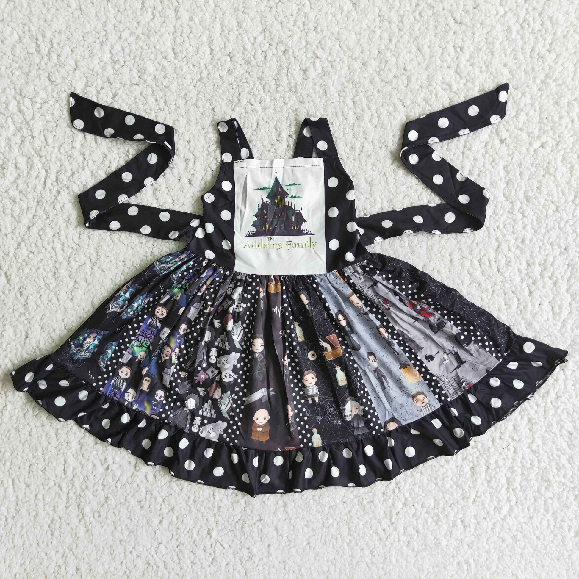 Sleeveless black cartoon design girls summer twirl dress A7-13