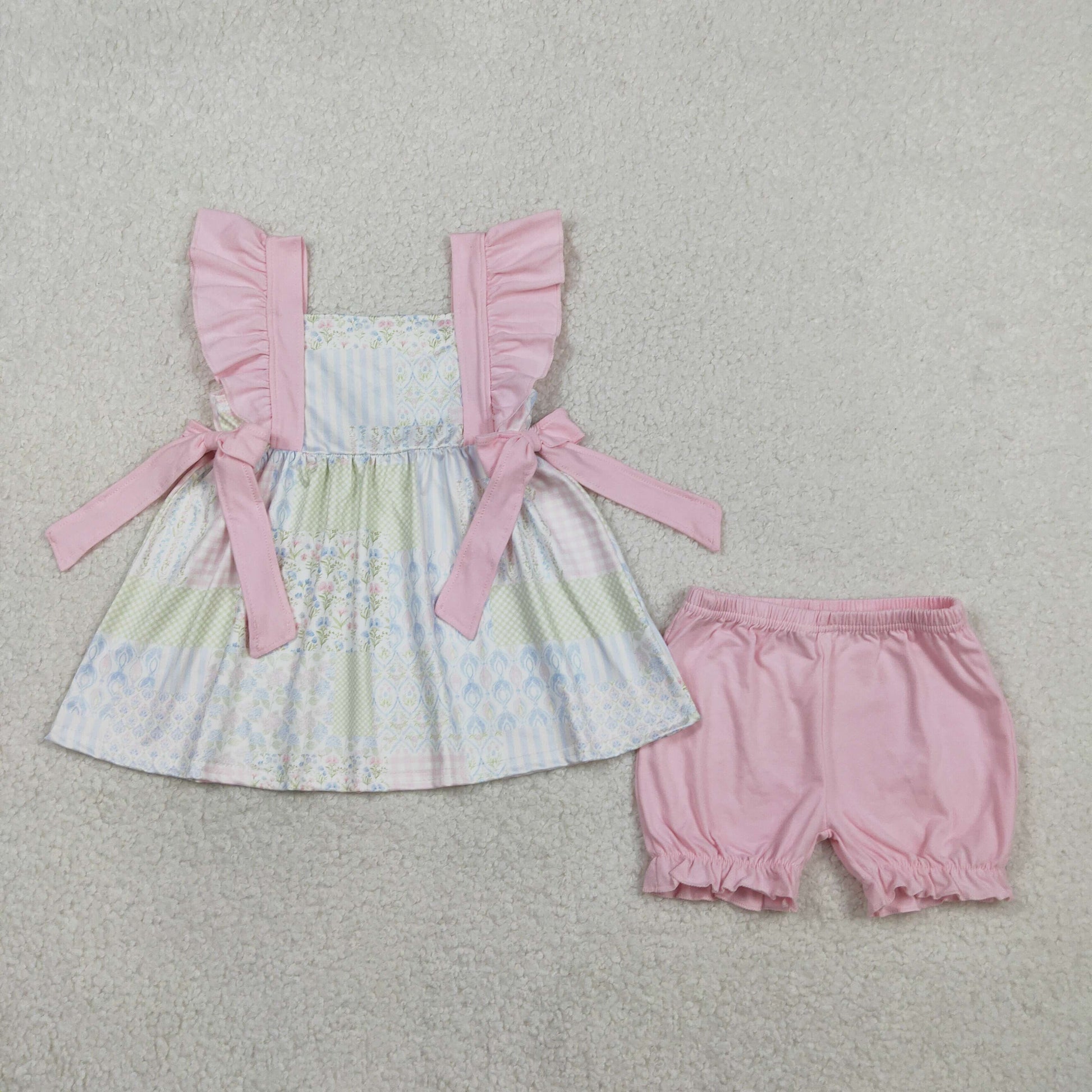 Small Flowers Plaid Print Girls Summer Clothes Sisters Matching Wear