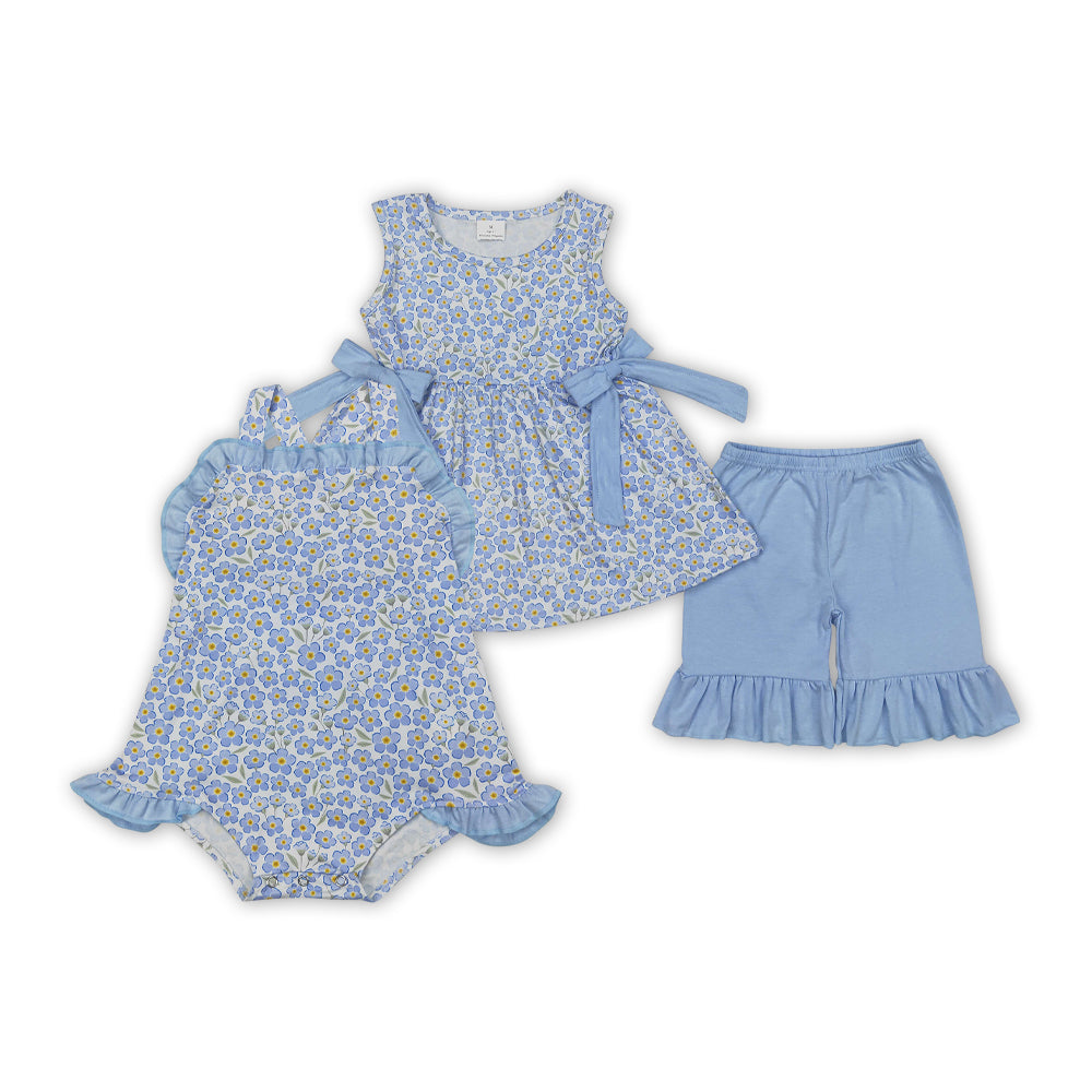 Small Flowers Blue Print Sisters Summer Matching Clothes