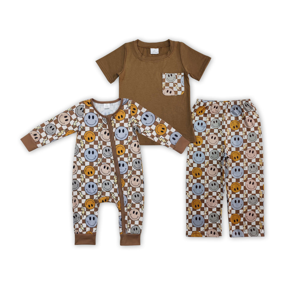 Smiling Face Plaid Flash Print Brothers Matching Clothes