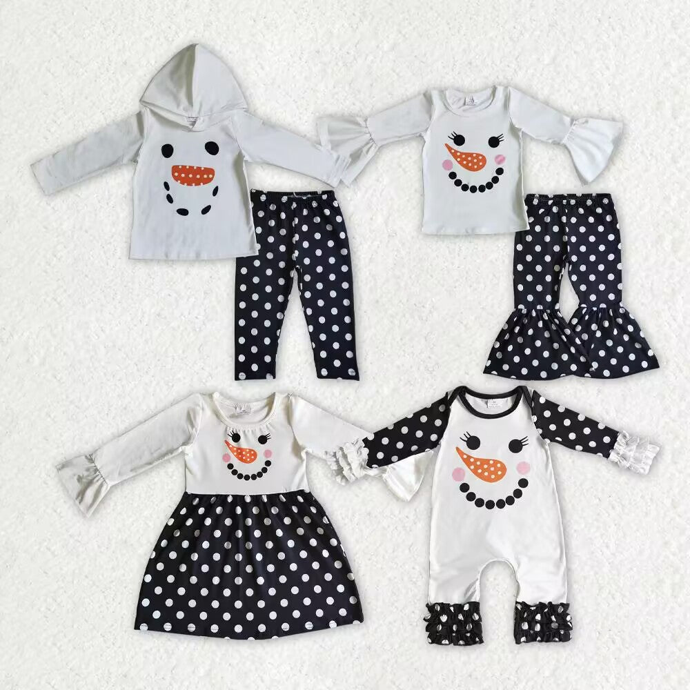 (Promotion)Snowman Black Dots Print Sisters Matching Clothes