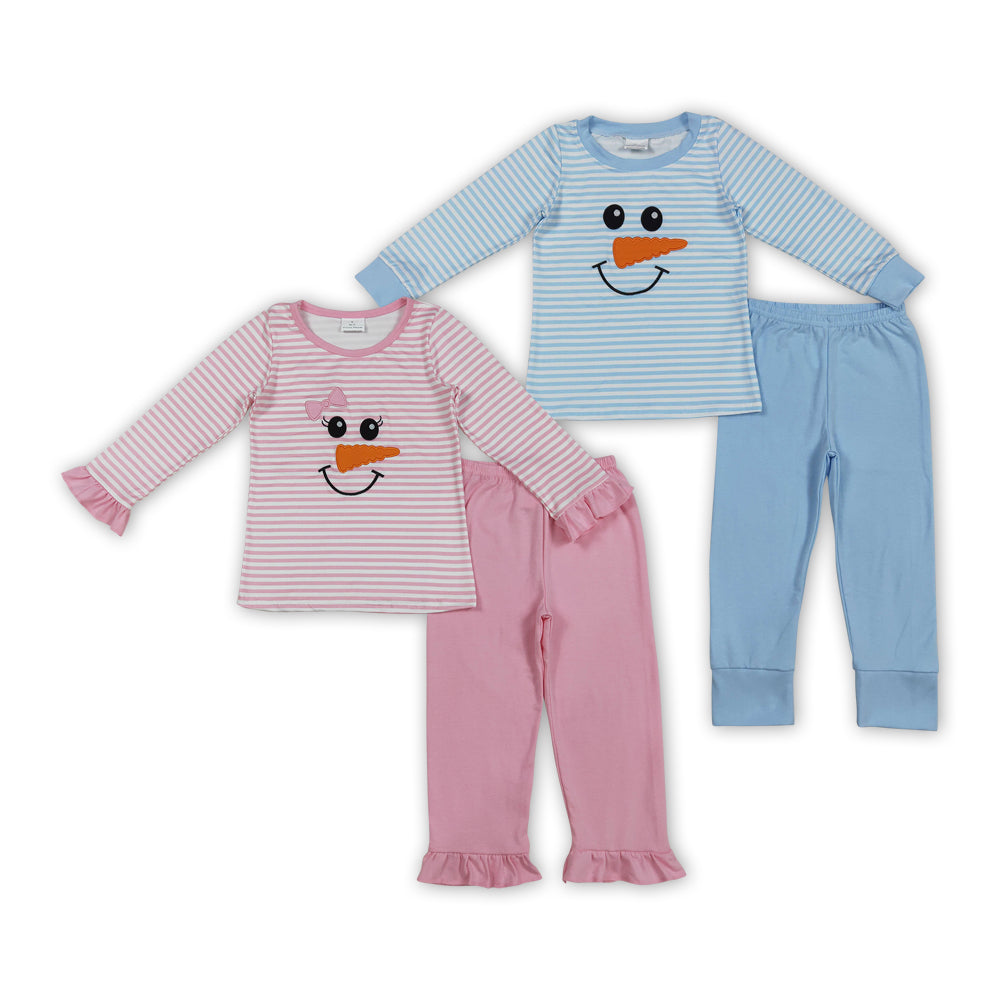 Snowman Embroidery Kids Christmas Pajamas Clothes Sibling Wear