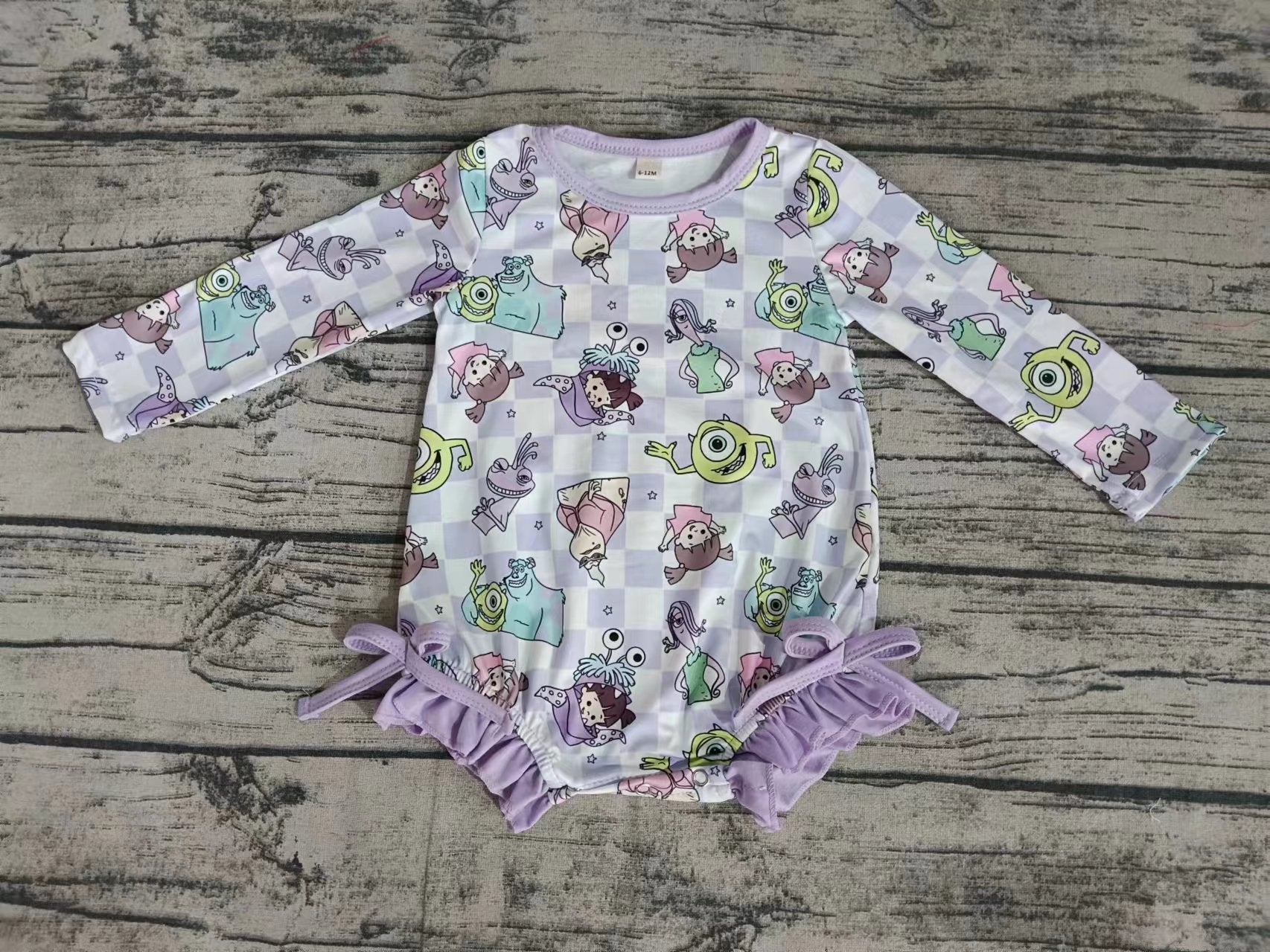 (Custom Design Preorder MOQ 5) Cartoon Monster Print Girls 1 Piece Long Sleeve Swimsuits