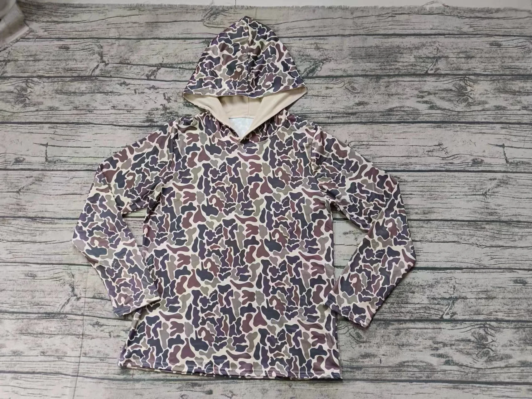 (Custom Design Preorder MOQ 5) Brown Camo Print Adult Hoodie Tee Shirts Top