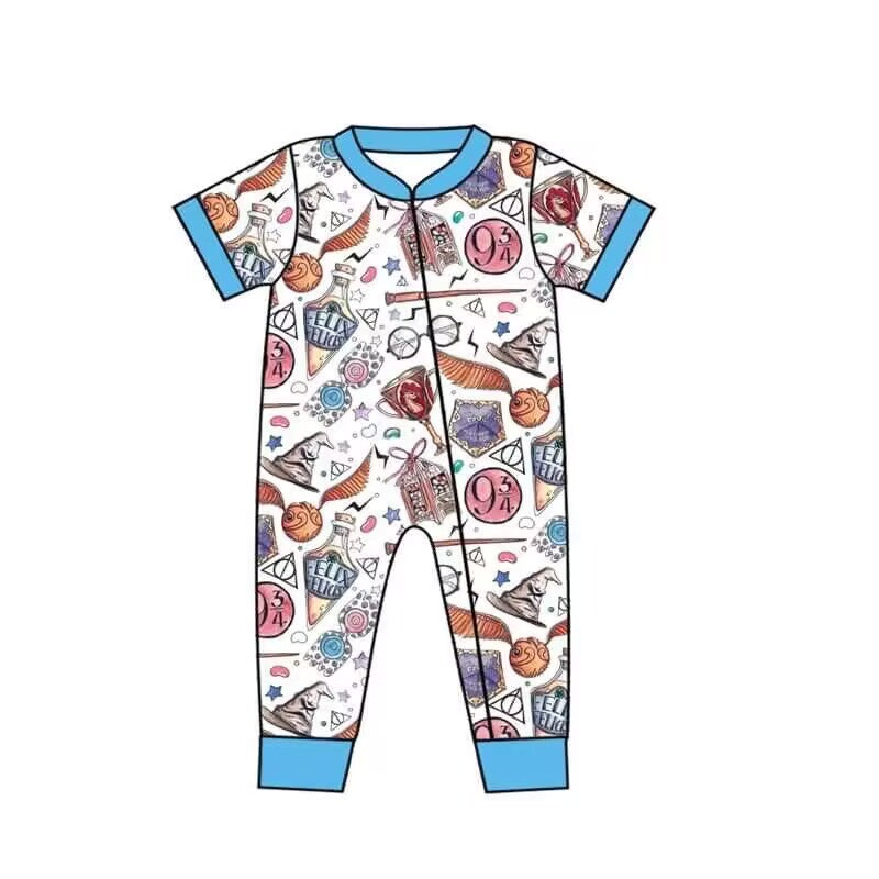 (Custom Design Preorder MOQ 5) Cartoon Magic Print Baby Summer Zipper Romper