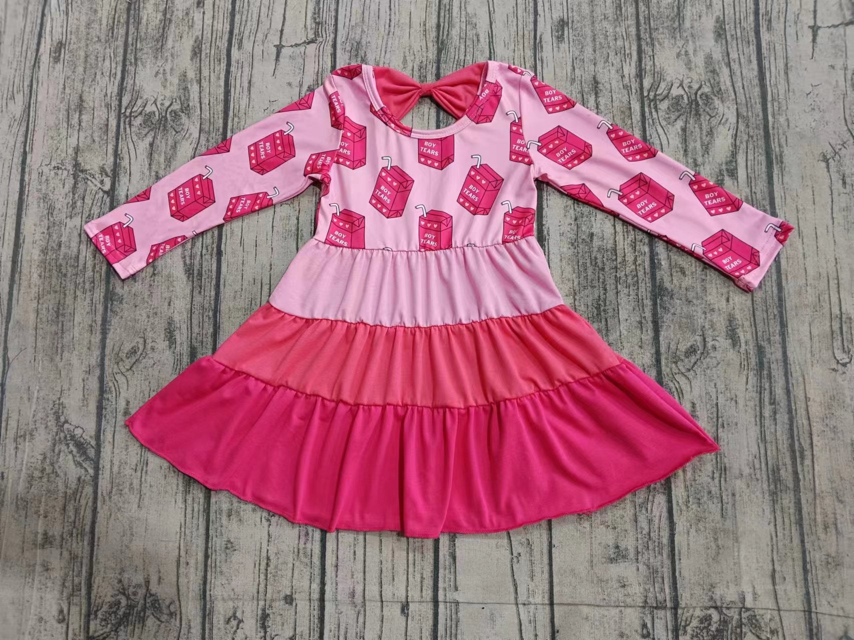 (Custom Design Preorder MOQ 5 ) Boy Tears Box Pink Print Girls Valentine's Day Knee Length Dress