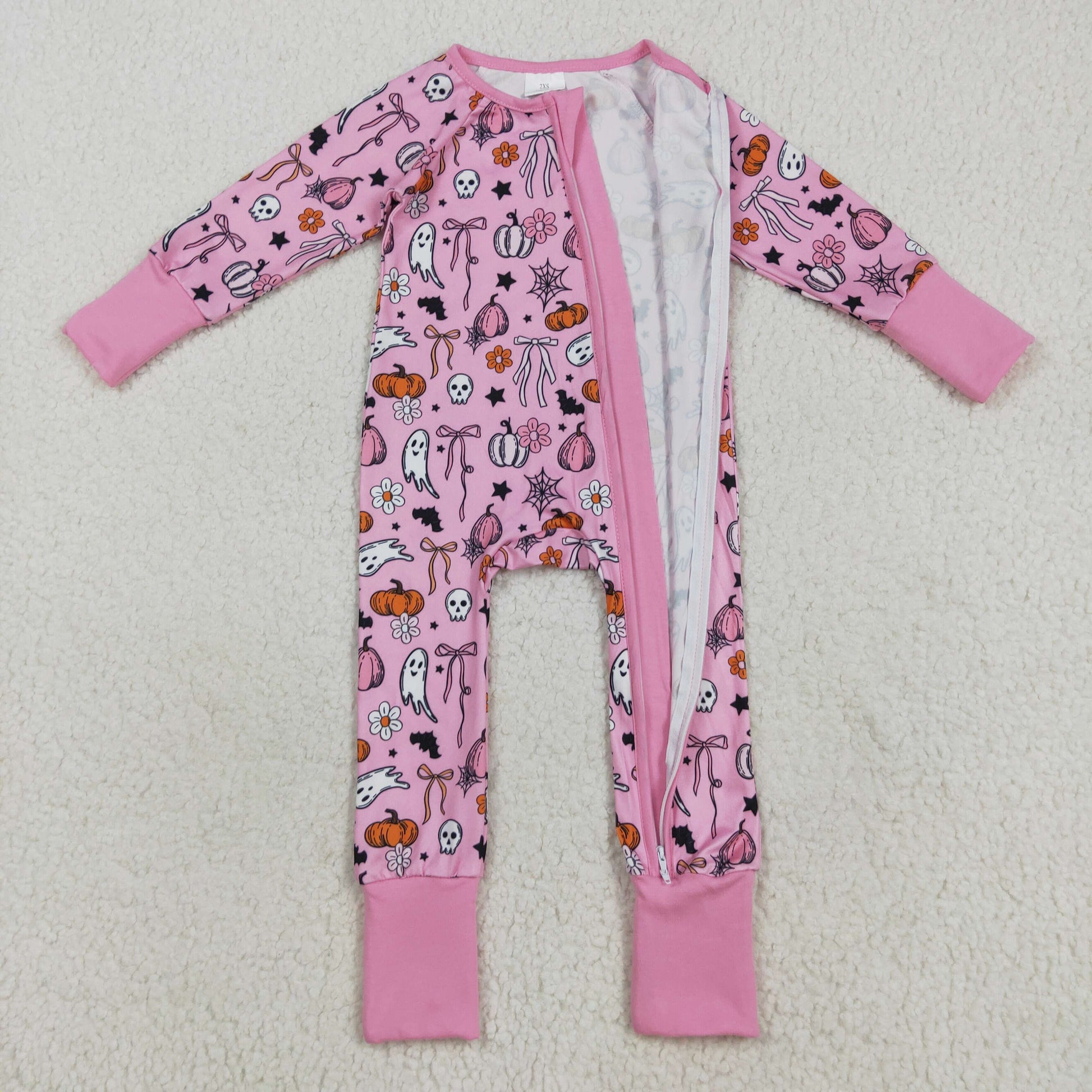 Spooky Pumpkin Bows Pink Print Girls Halloween Pajamas Matching Clothes