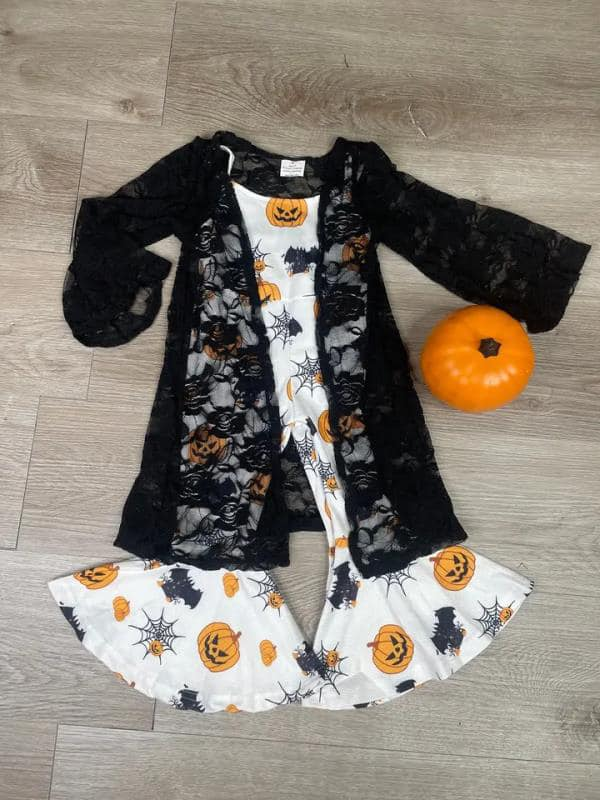 GLP0679 Baby girls black cardigan with Halloween jumpsuits kids clothes set