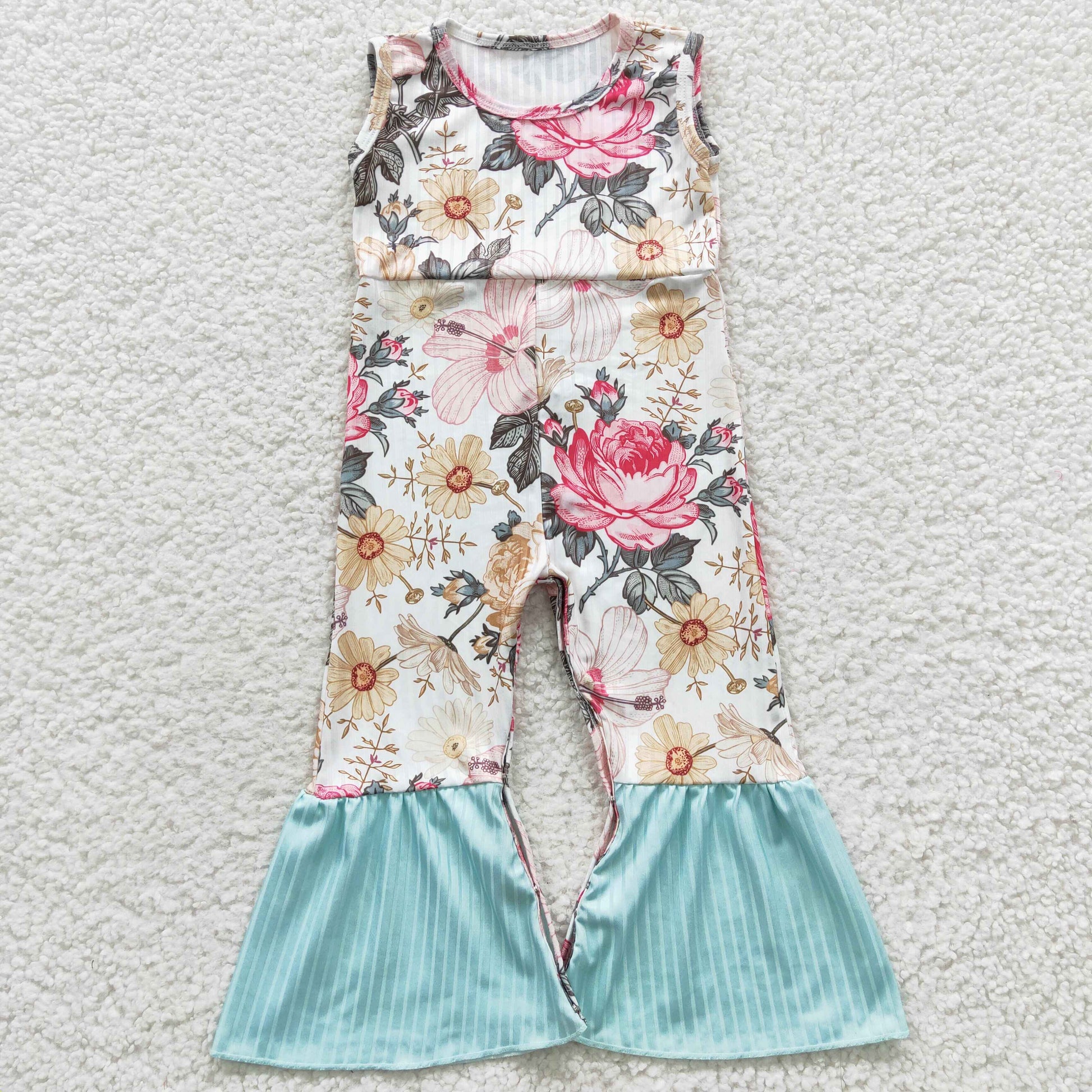 SR0368 Girls sleeveless flowers print summer jumpsuits