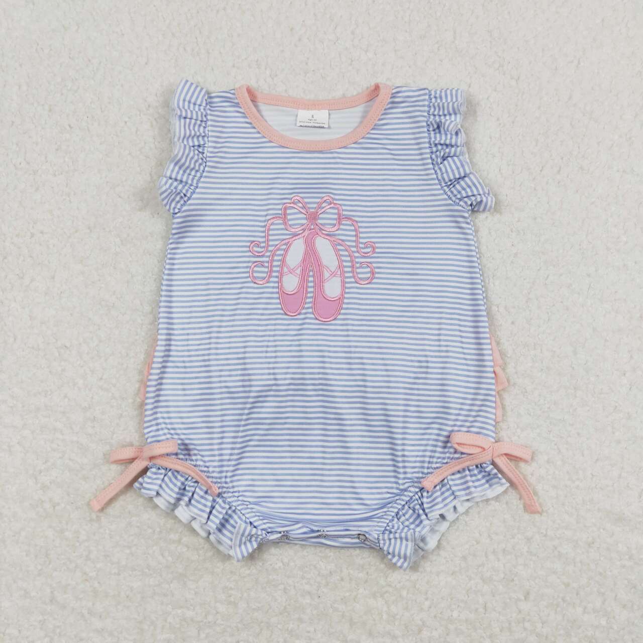 SR0931 Blue Stripes Dance Shoes Embroidery Baby Girls Summer Romper