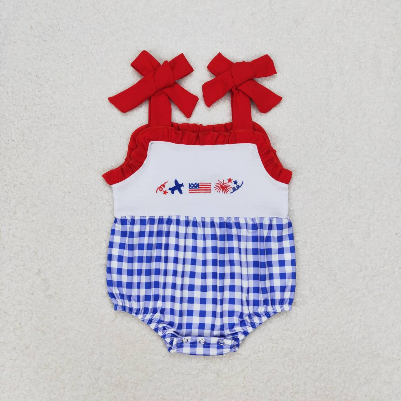 SR1030 Airplane Flag Fireworks Embroidery Baby Girls 4th of July Romper