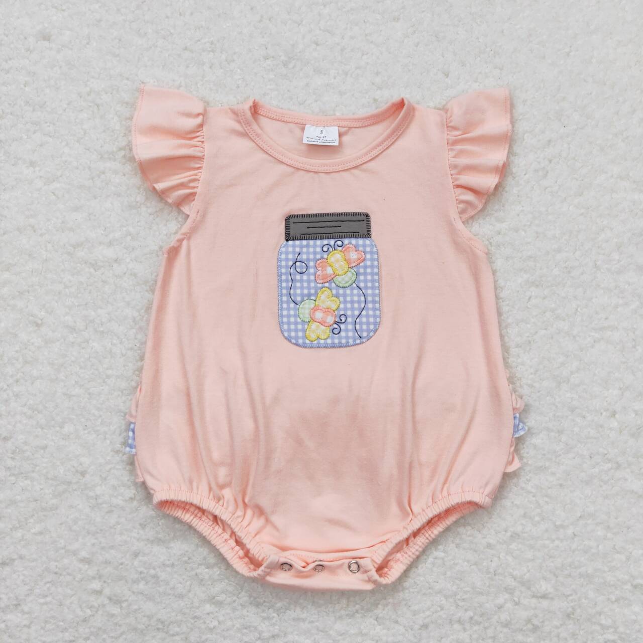 SR1112 Butterfly Embroidery Pink Baby Girls Summer Romper