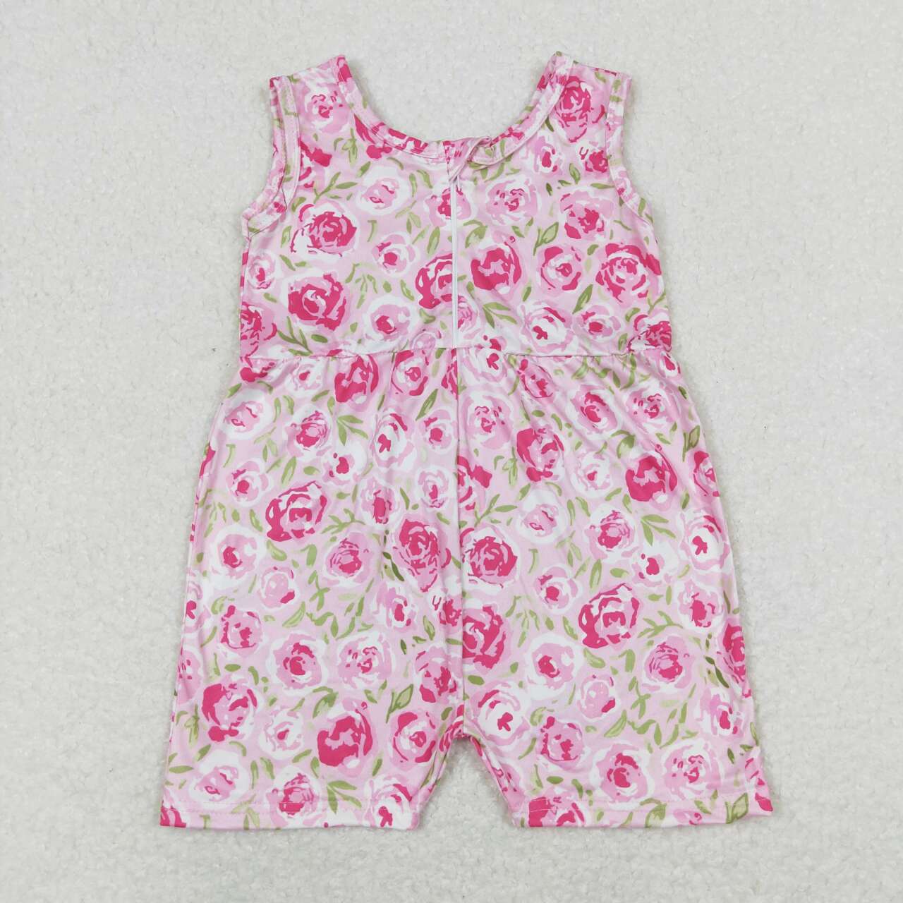 SR1127 Flowers Print Girls Summer Zipper Jumpsuits
