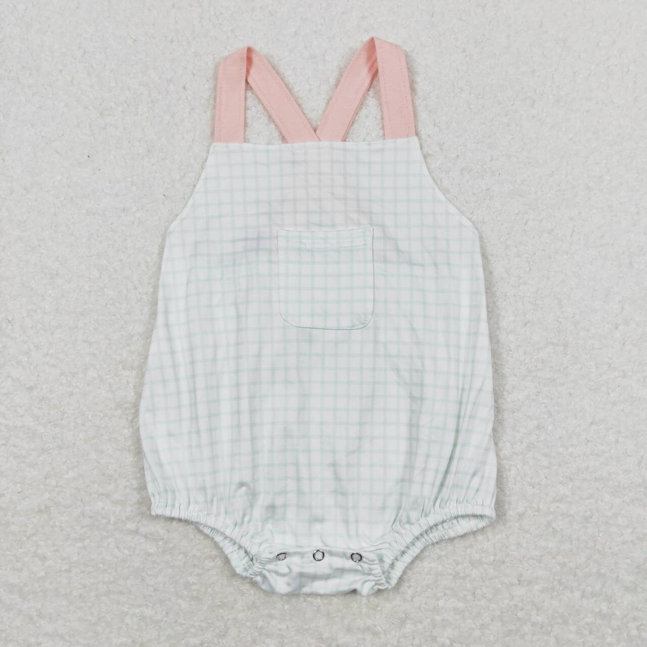 SR1229 Plaid Print Pocket Baby Boys Summer Romper