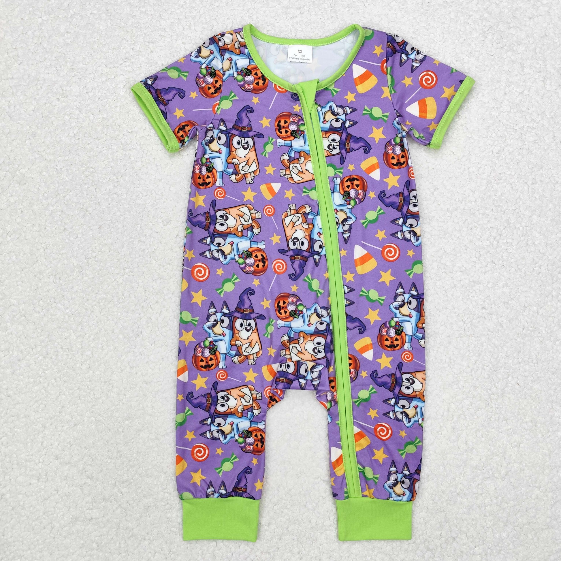 SR1803 Cartoon Dog Candy Print Baby Halloween Bamboo Zipper Romper