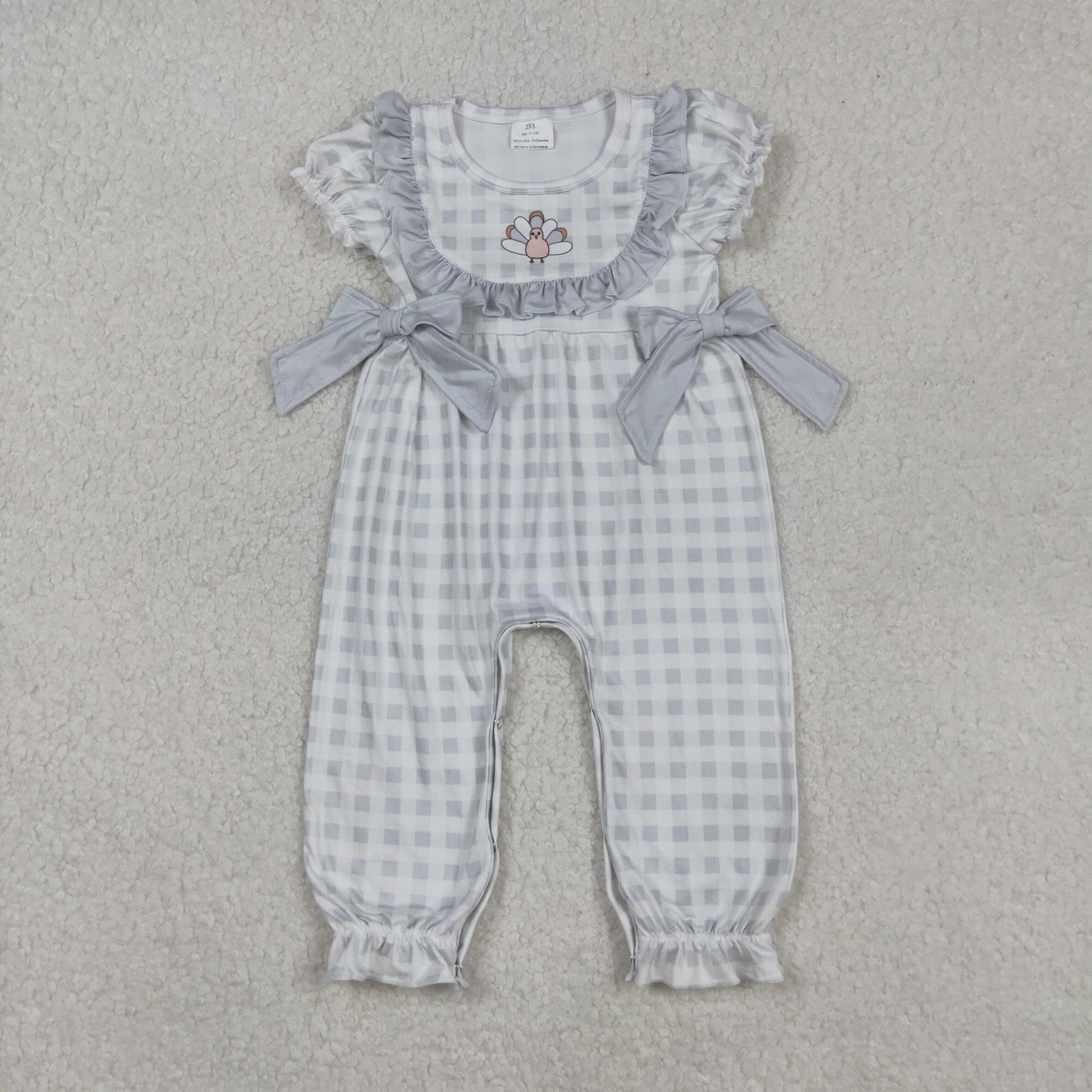 SR1970 Turkey Plaid Print Baby Girls Thanksgiving Romper