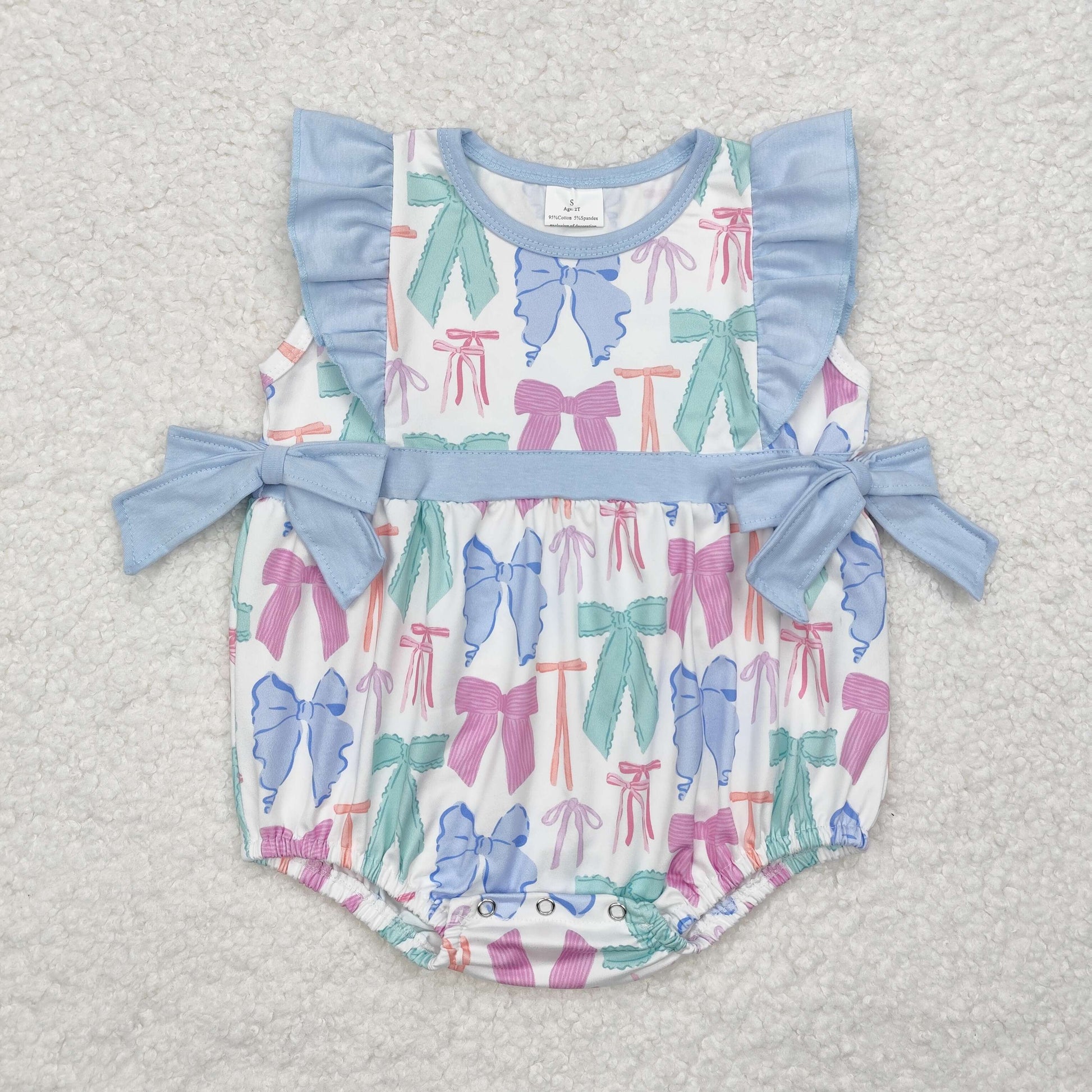 SR2027 Colorful Bows Print Baby Girls Short Sleeve Romper