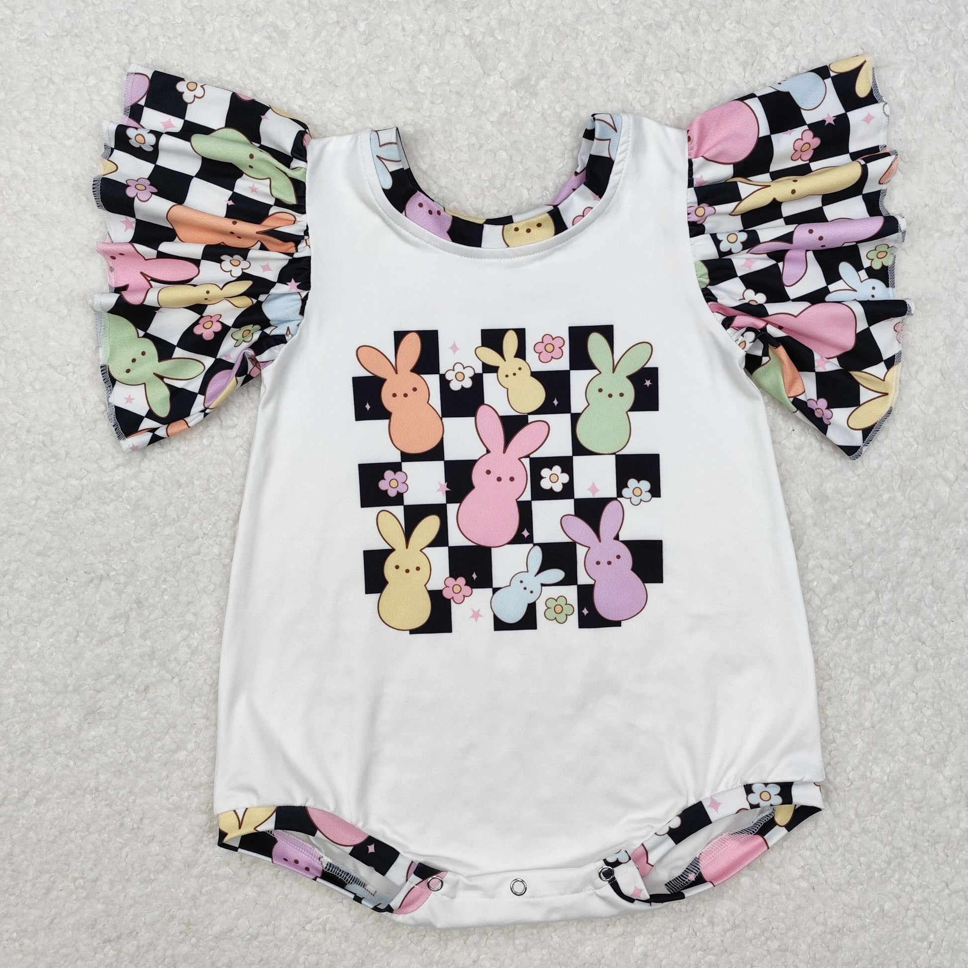 SR2227 Bunny Flowers Plaid Print Baby Girls Easter Romper