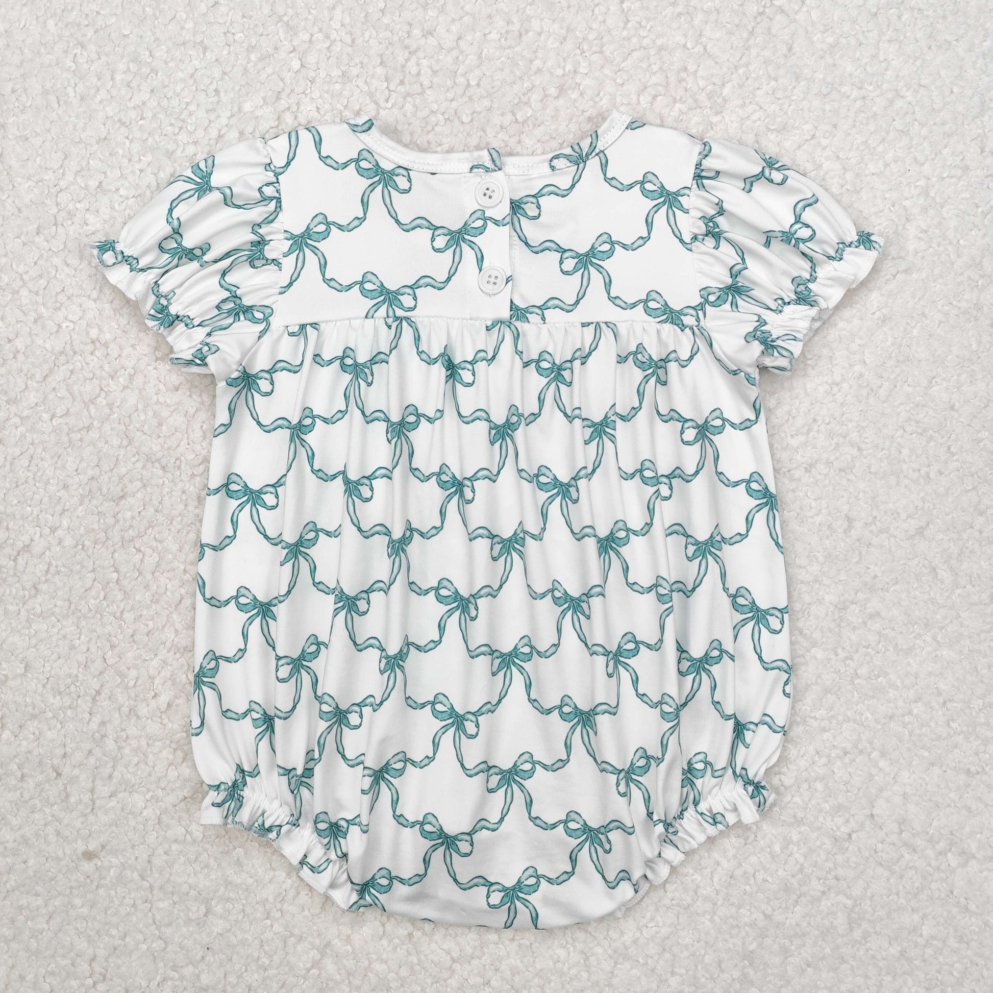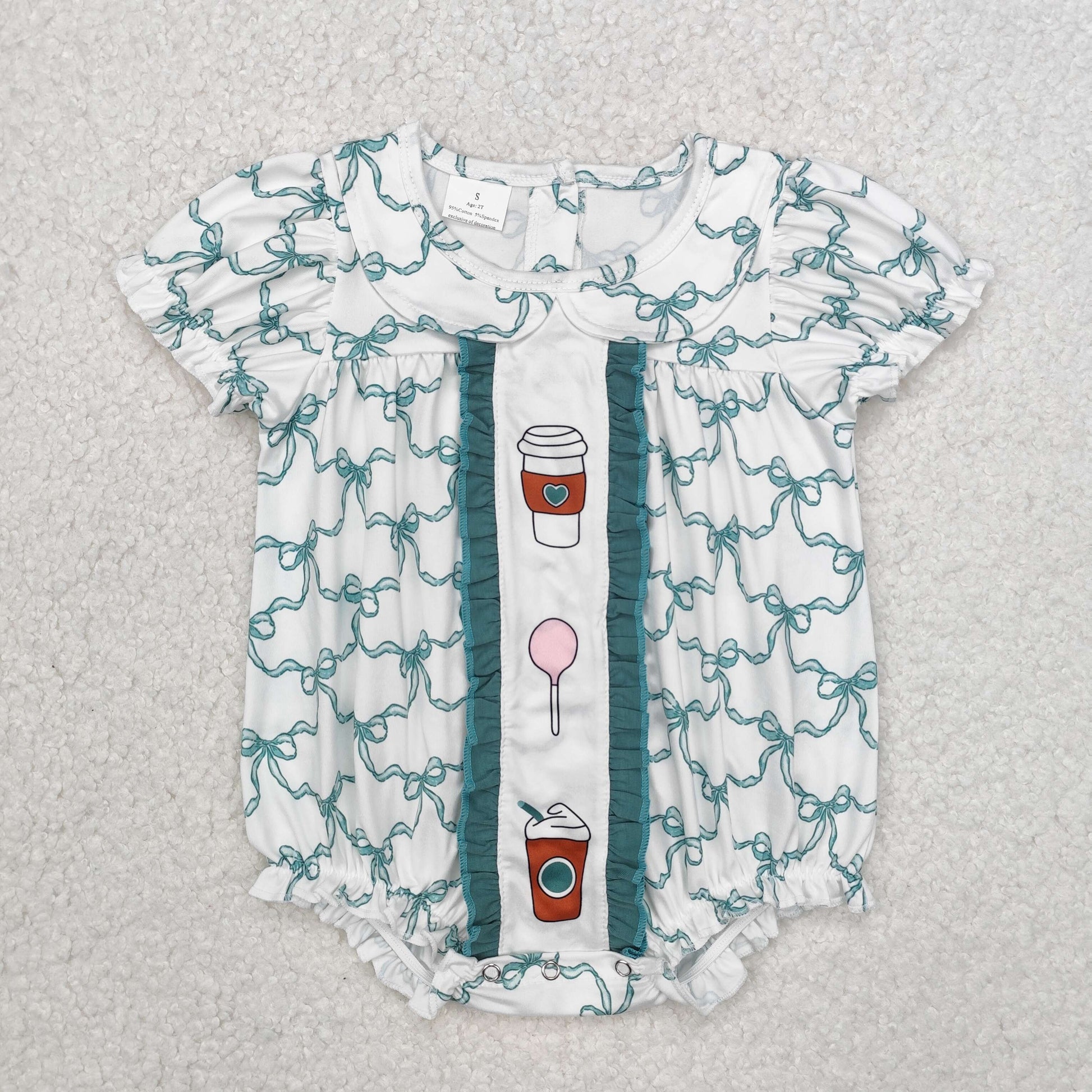 SR2281 Coffee Lollipop Green Bows Print Baby Girls Summer Romper