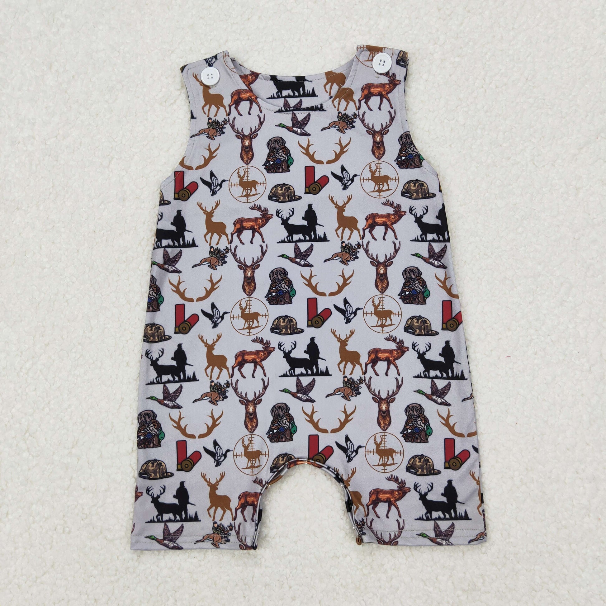 SR2539 Deer Duck Dog Hunting Print Baby Boys Summer Romper