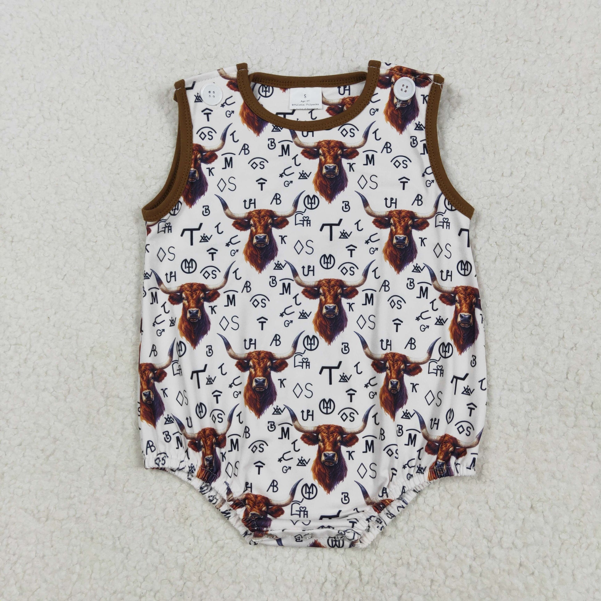 SR2699 Highland Cow Western Wild Print Baby Boys Summer Romper