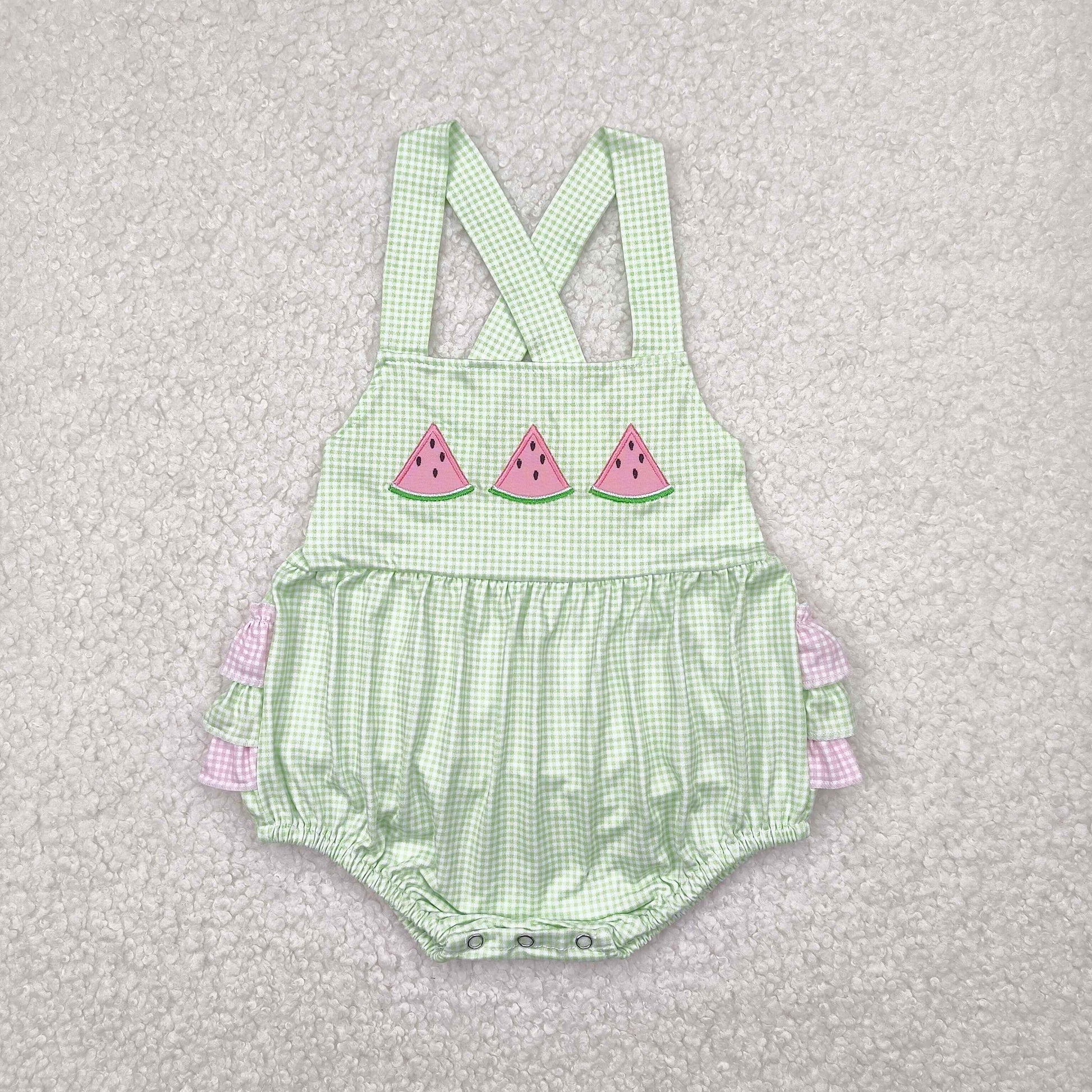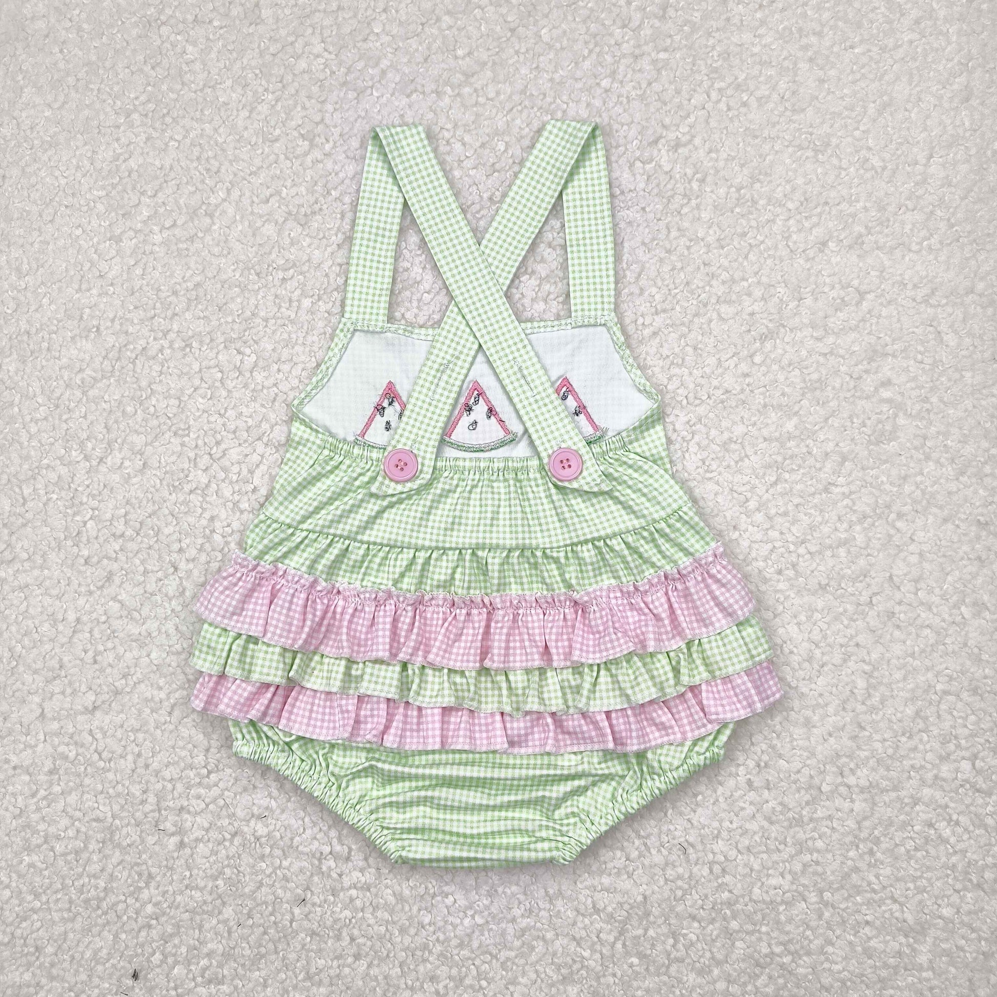 SR2764 Watermelon Embroidery Plaid Baby Girls Summer Bubble Romper