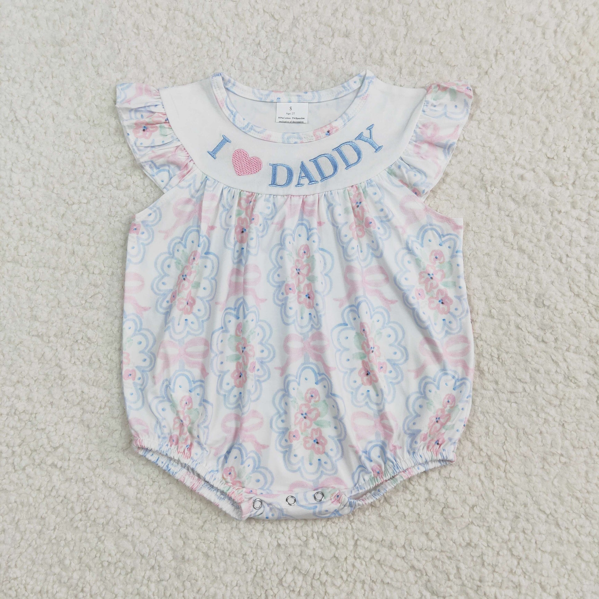 SR2946 I LOVE DADDY Embroidery Flowers Print Baby Girls Summer Romper