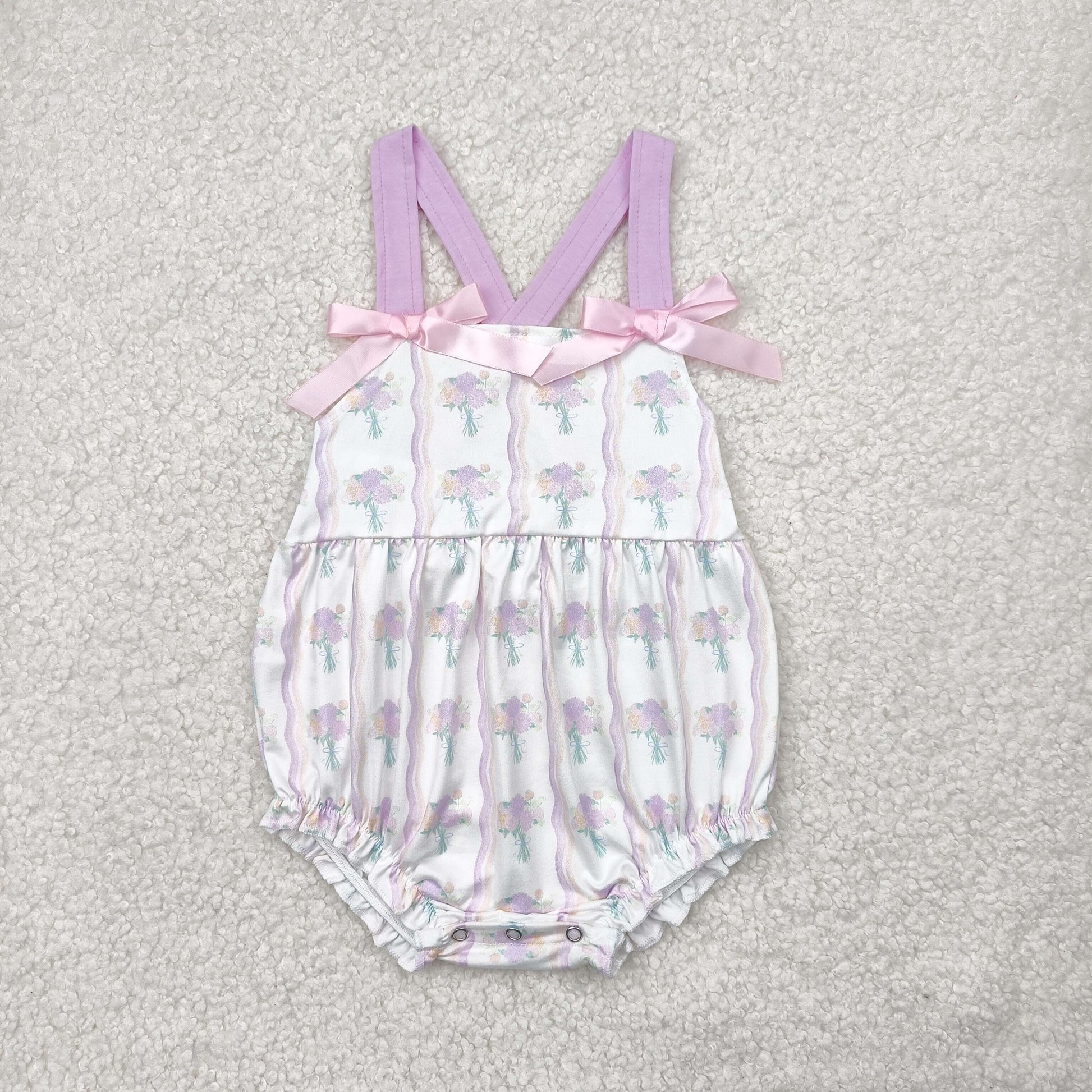 SR2961 Small Flowers Pink Print Baby Girls Summer Romper