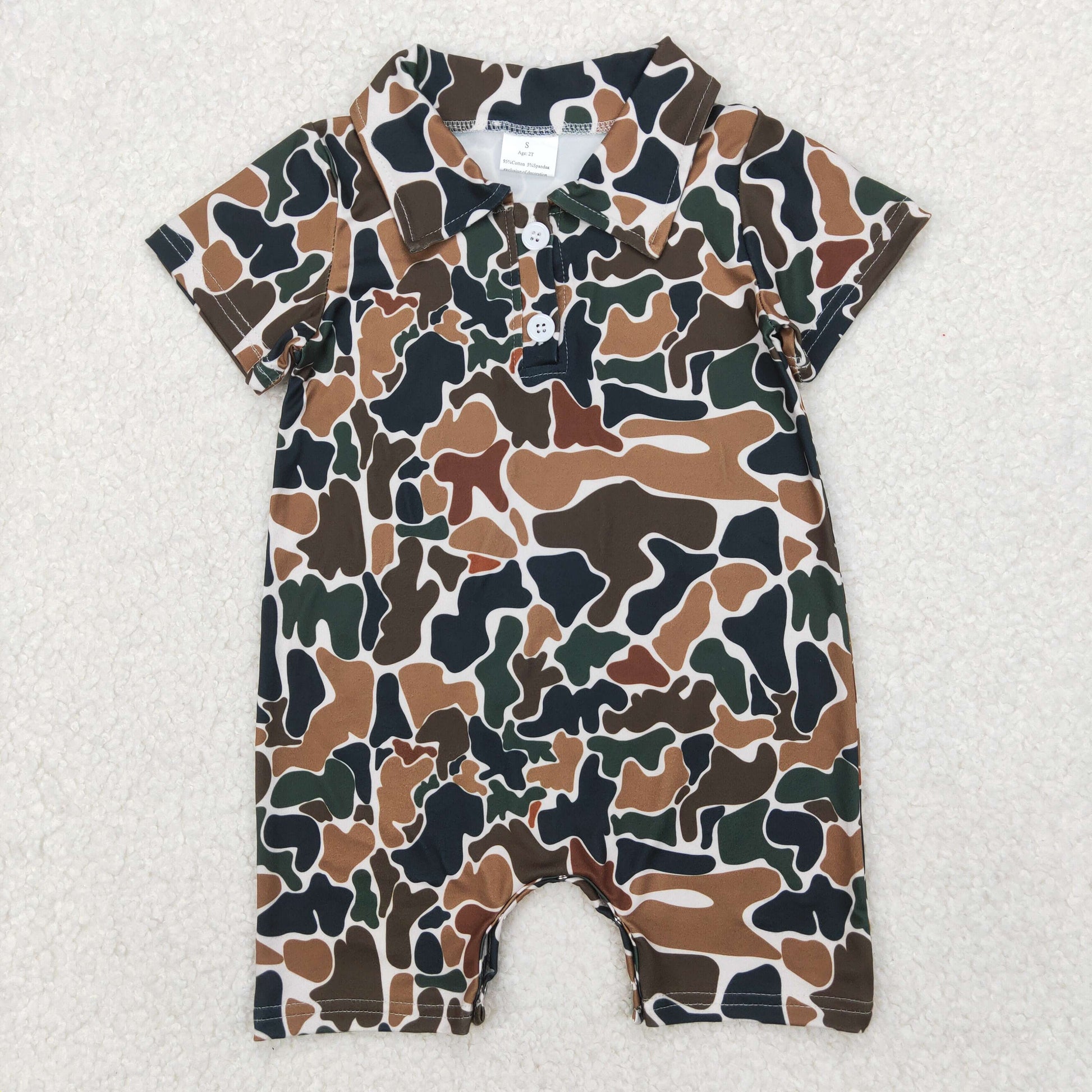 SR2979 Brown Camo Print Baby Boys Summer Romper
