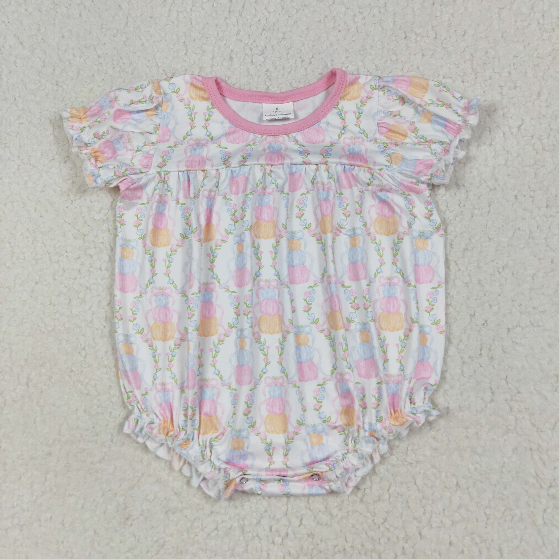 SR3151 Pumpkin Flowers Print Baby Girls Fall Bubble Romper