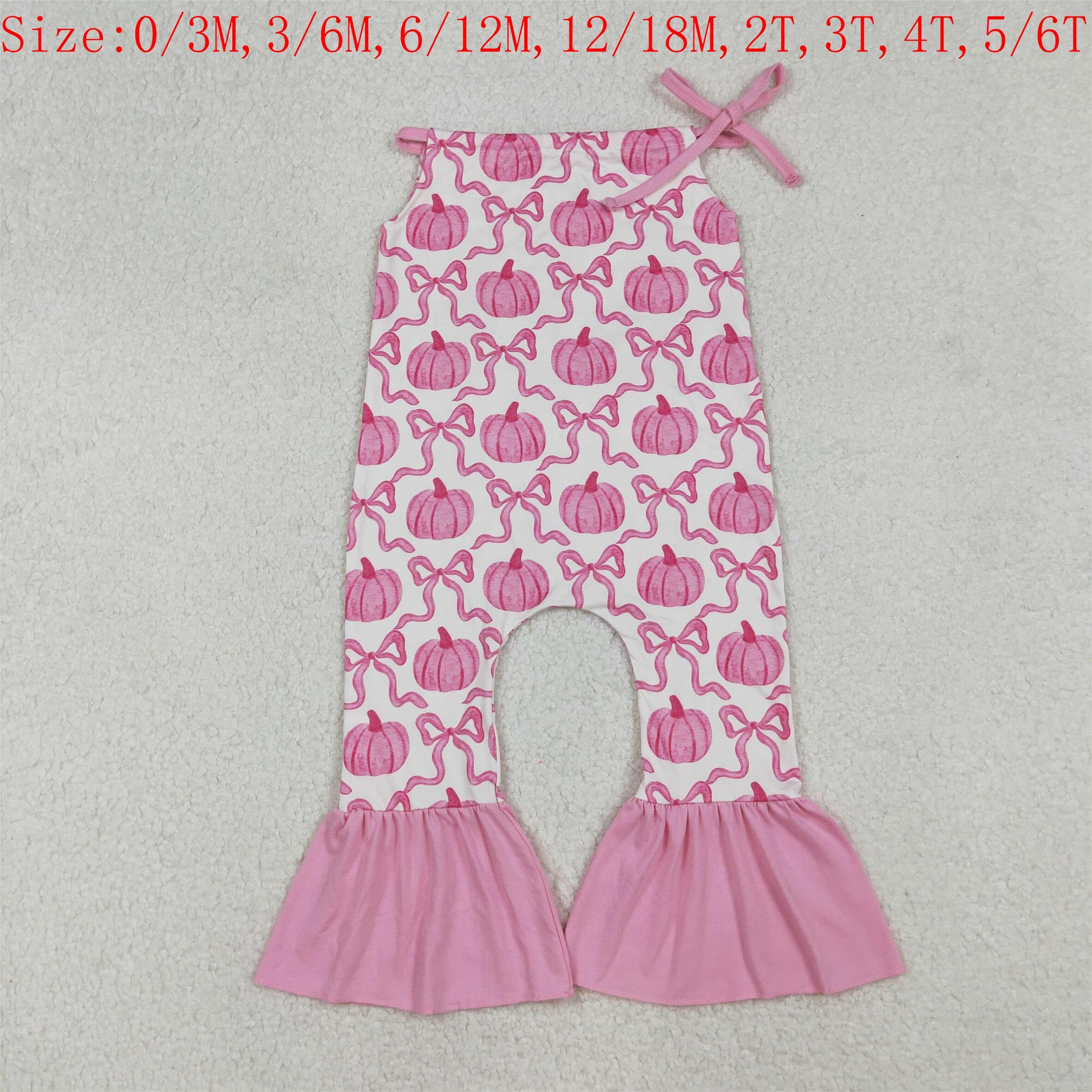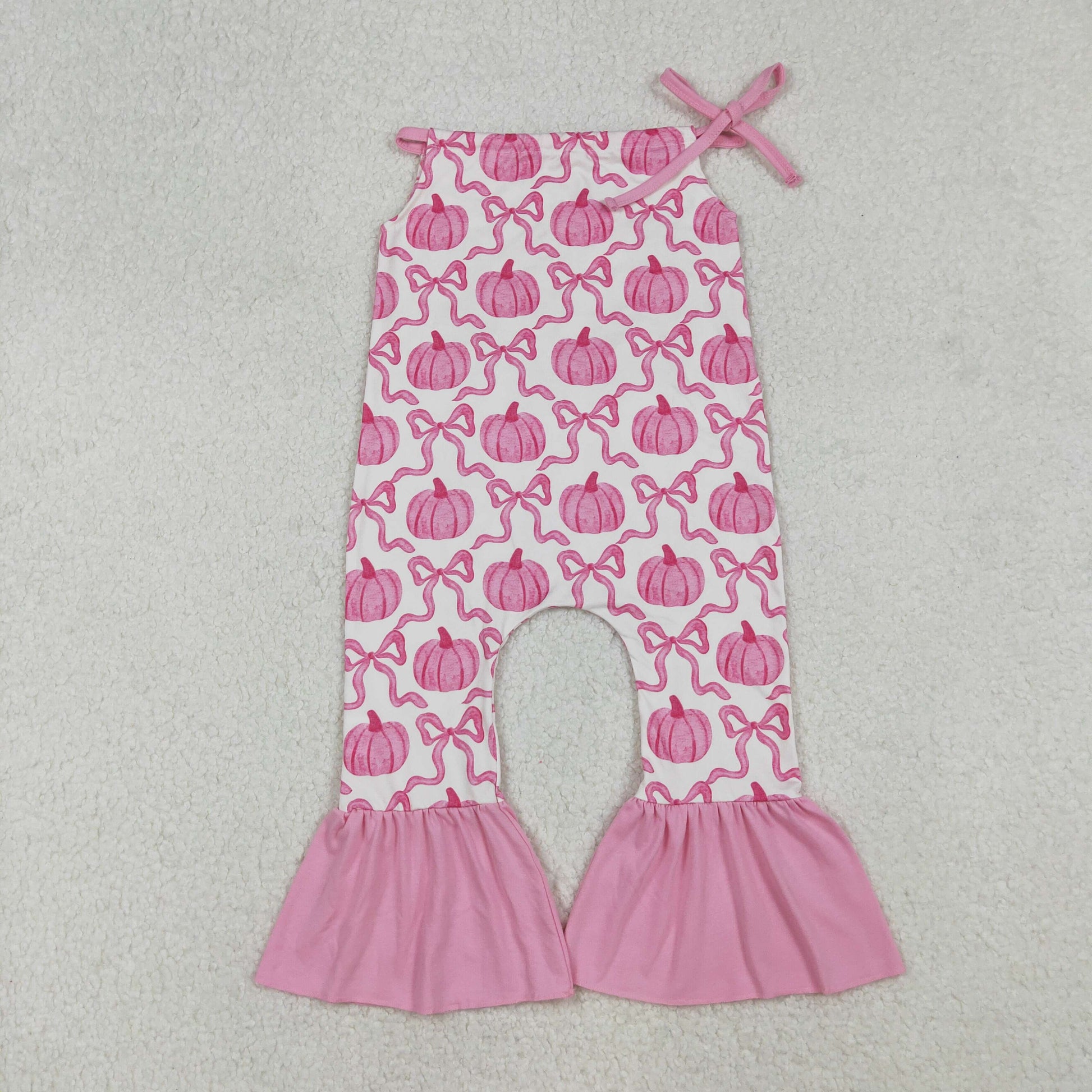 SR3200 Pumpkin Bows Pink Print Girls Fall Hatler Jumpsuits