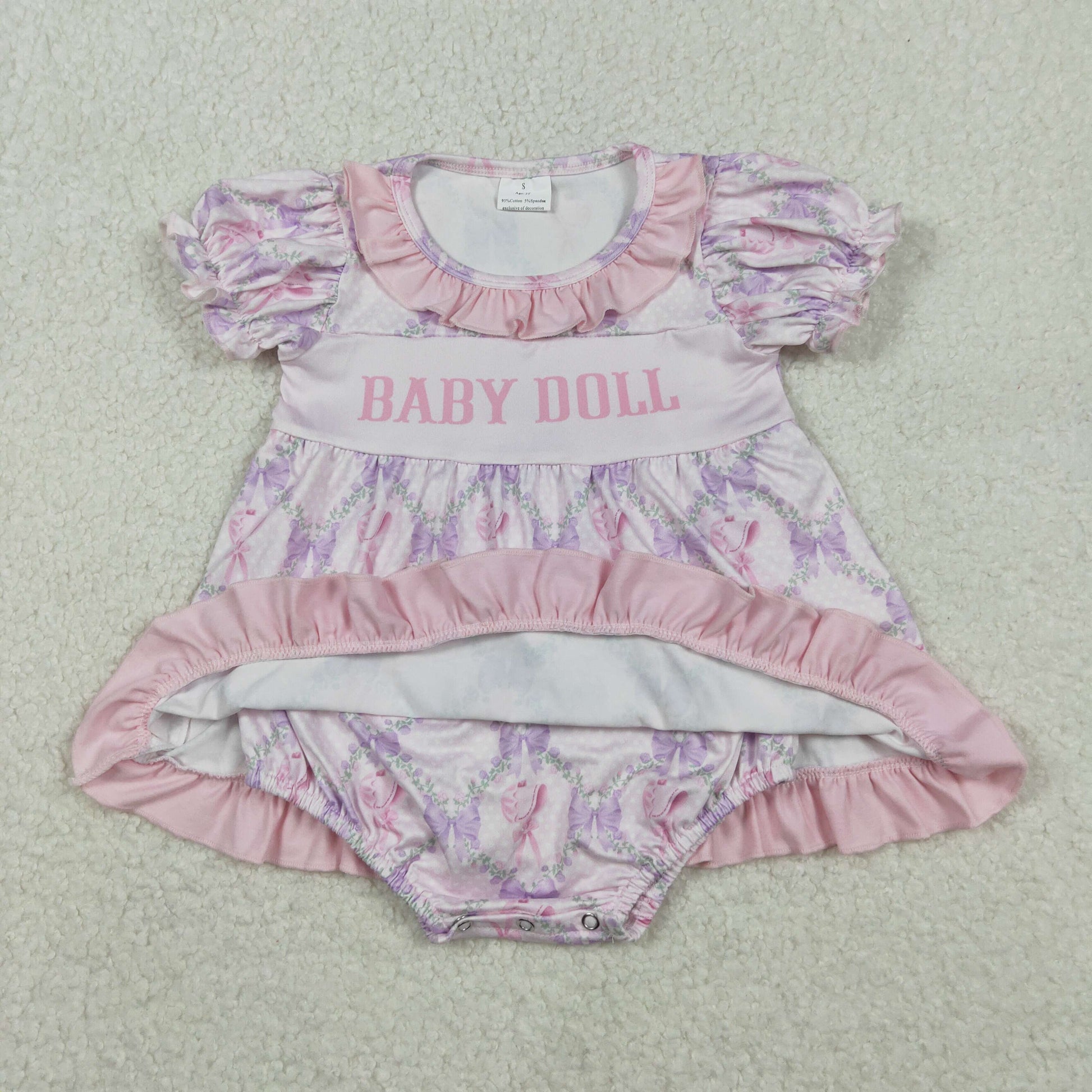SR3291 Baby Doll Flowers Bows Print Baby Girls Skirted Romper