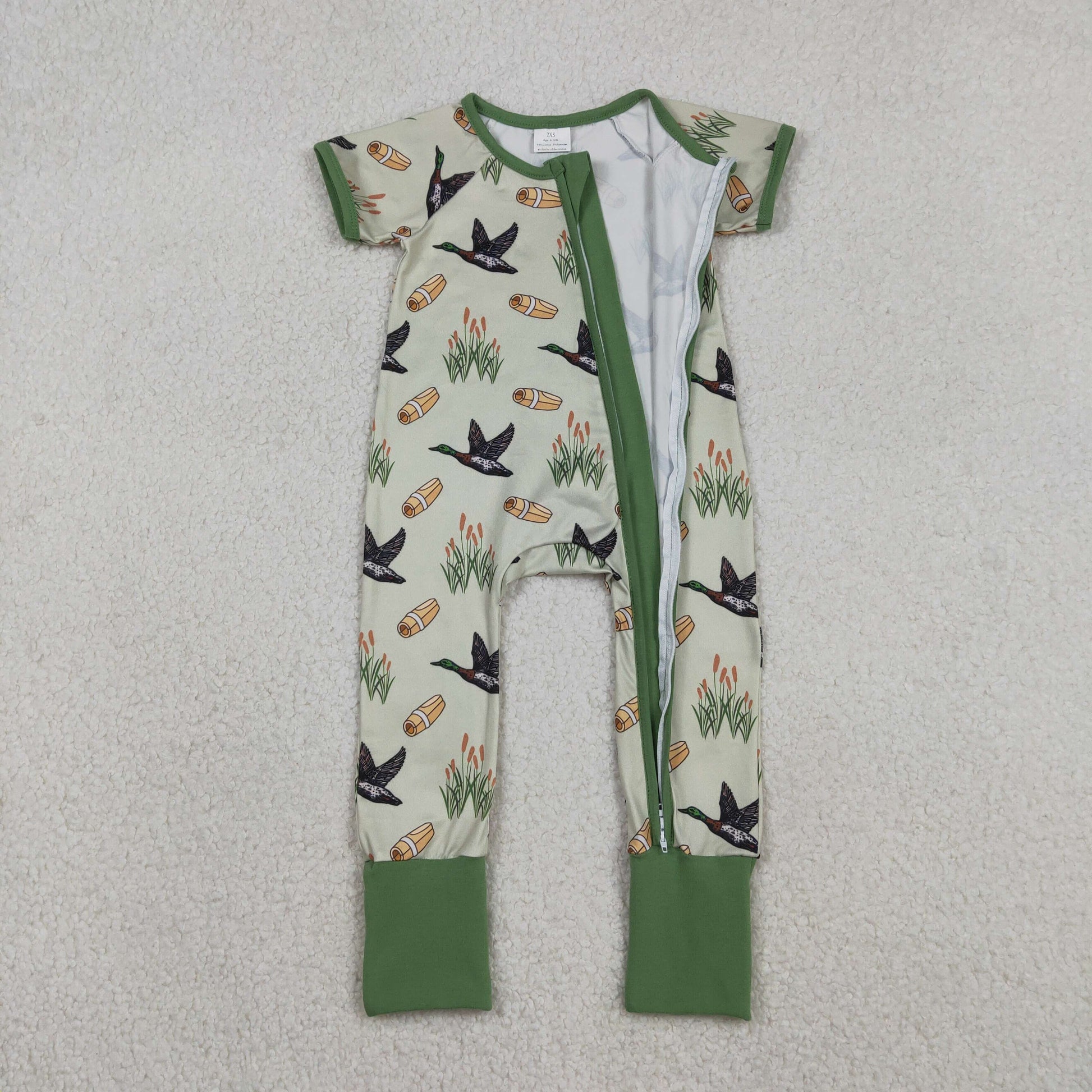 SR3498 Duck Print Baby Boys Zipper Sleeper Romper