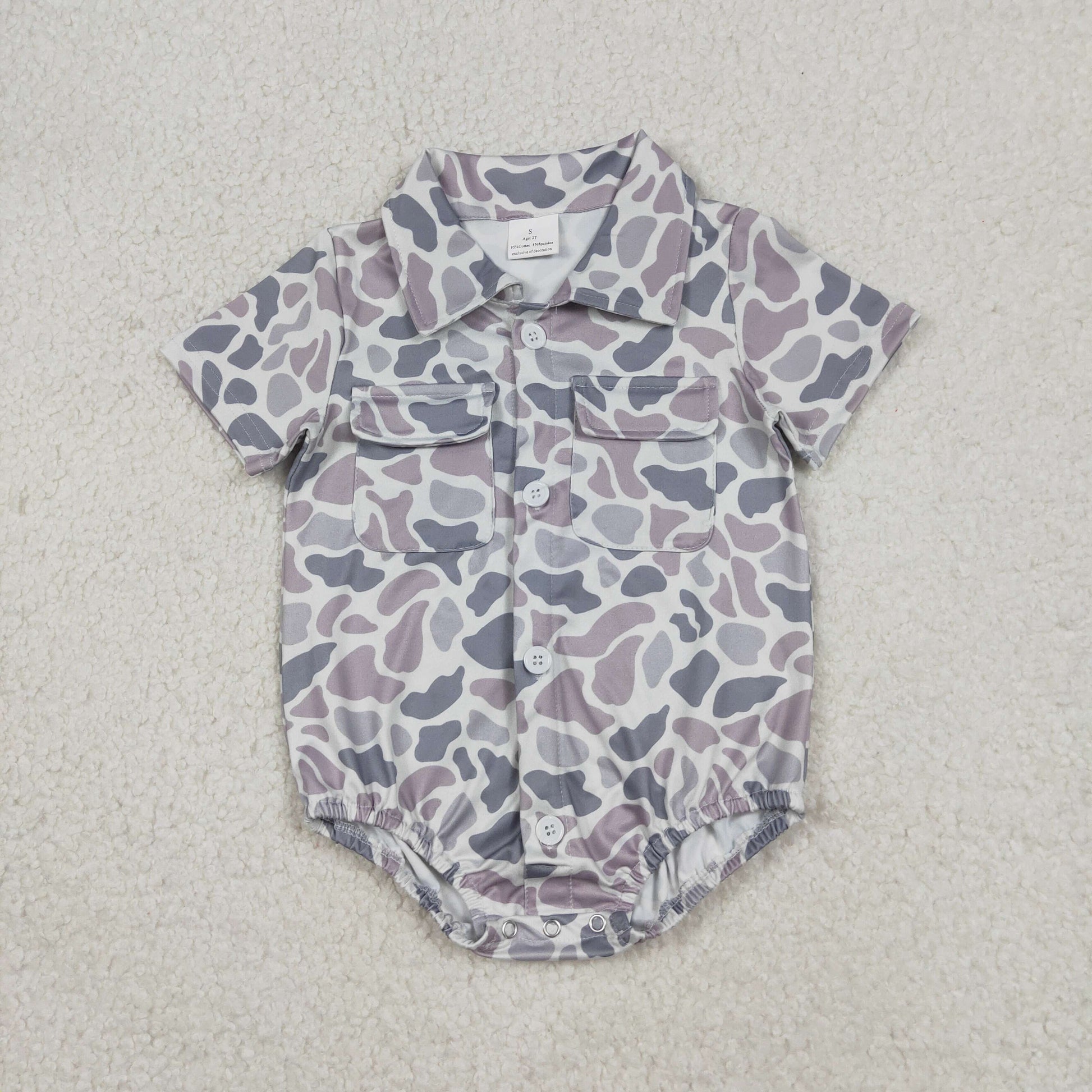 SR3654 Grey Camo Print Pockets Baby Boys Summer Romper