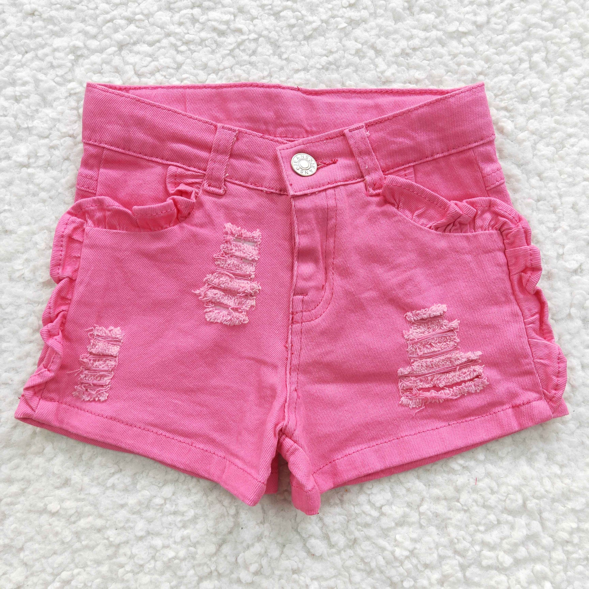 SS0013 Girls hot pink ruffle denim summer shorts