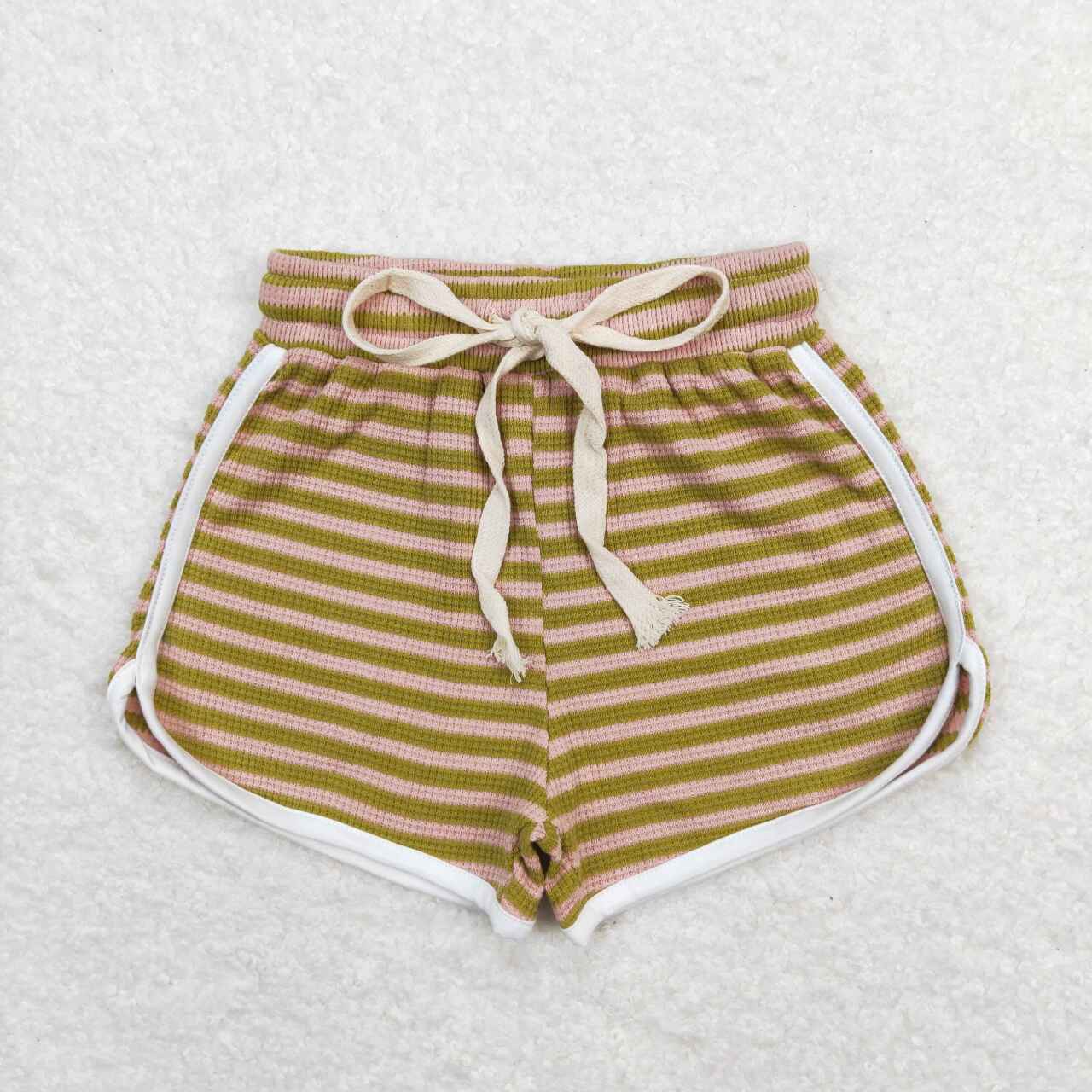 SS0321 Girls Pink Green Stripes Summer Cotton Sport Shorts