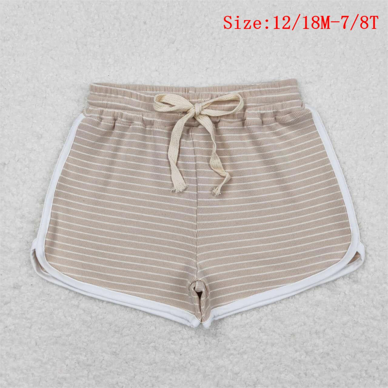 SS0342 Khaki Stripes Girls Summer Cotton Sport Shorts