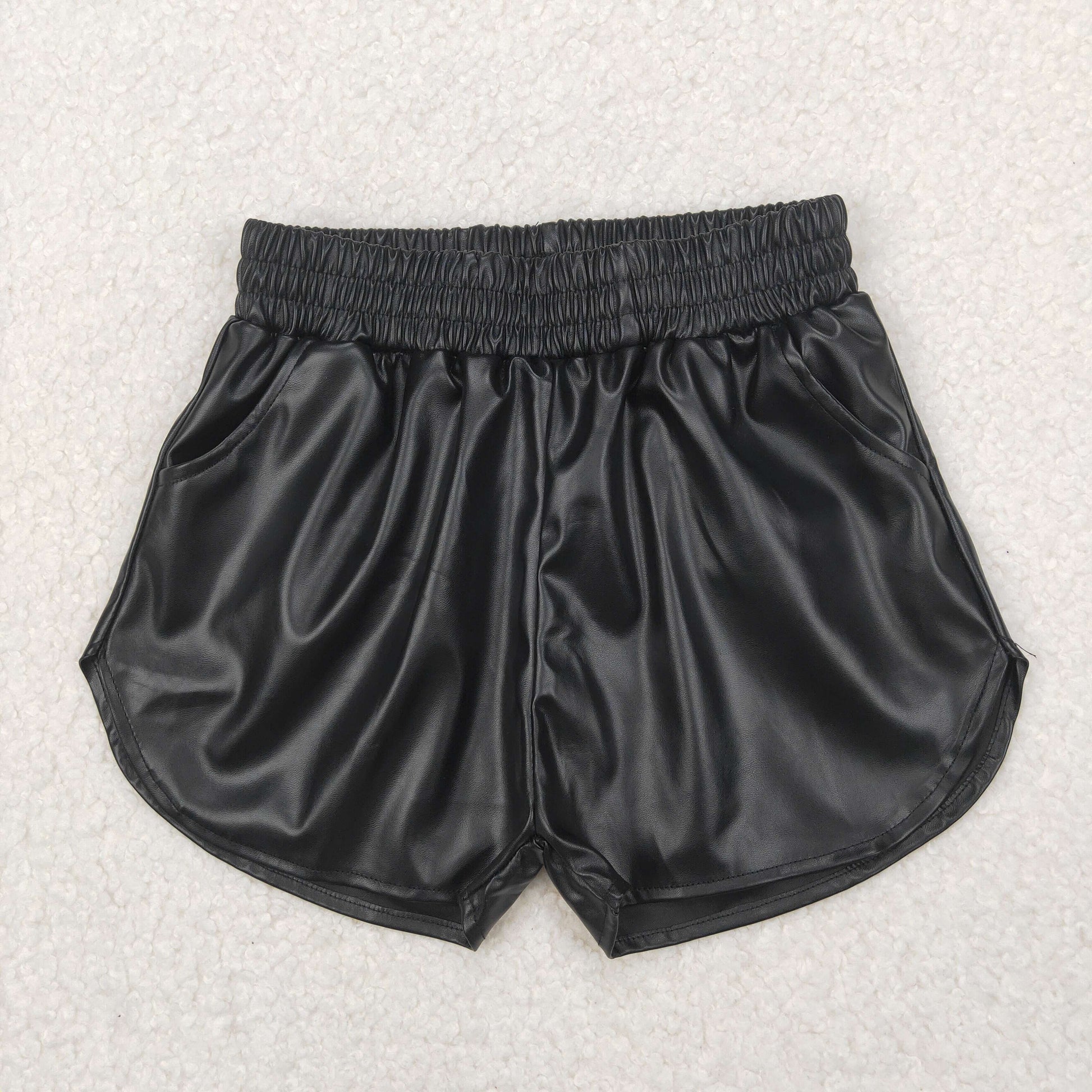 SS0413 Black Pocket Pleather Elastic Girls Summer Bottom Shorts