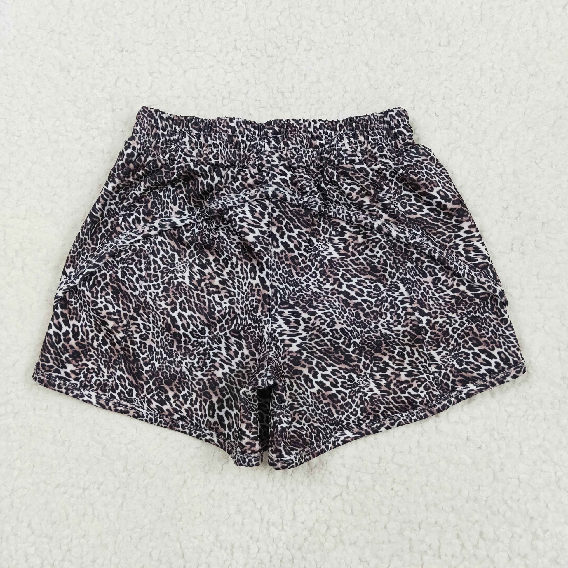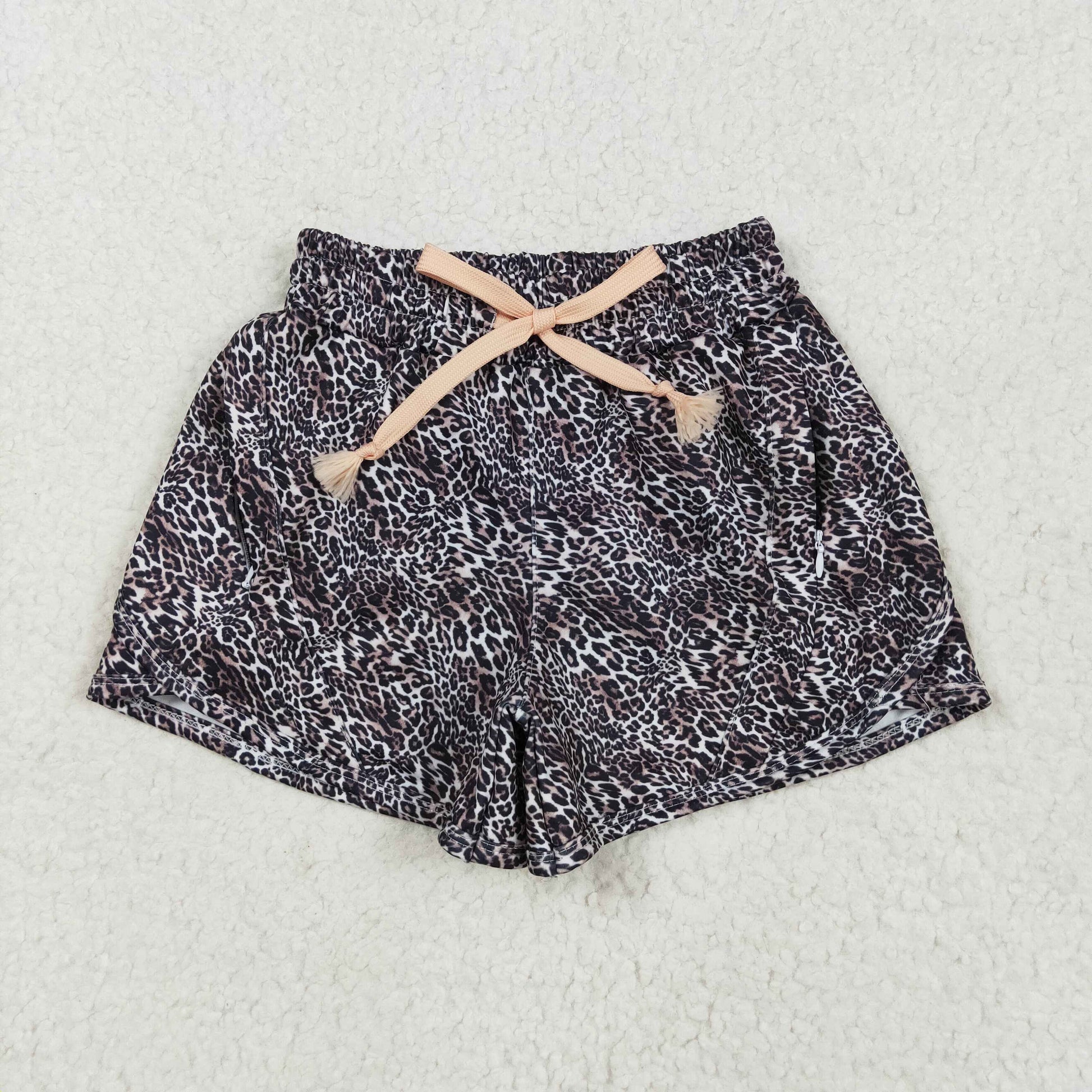 SS0480 Brown Small Leopard Print Zip Pockets Kids Summer Bottom Yoga Shorts