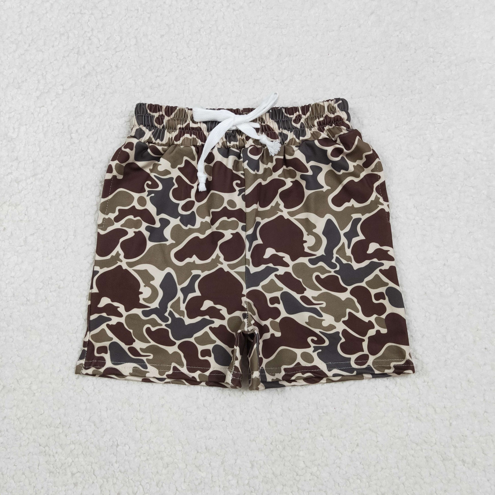 SS0735 Dark Brown Camo Print Boys Summer Bottom Shorts