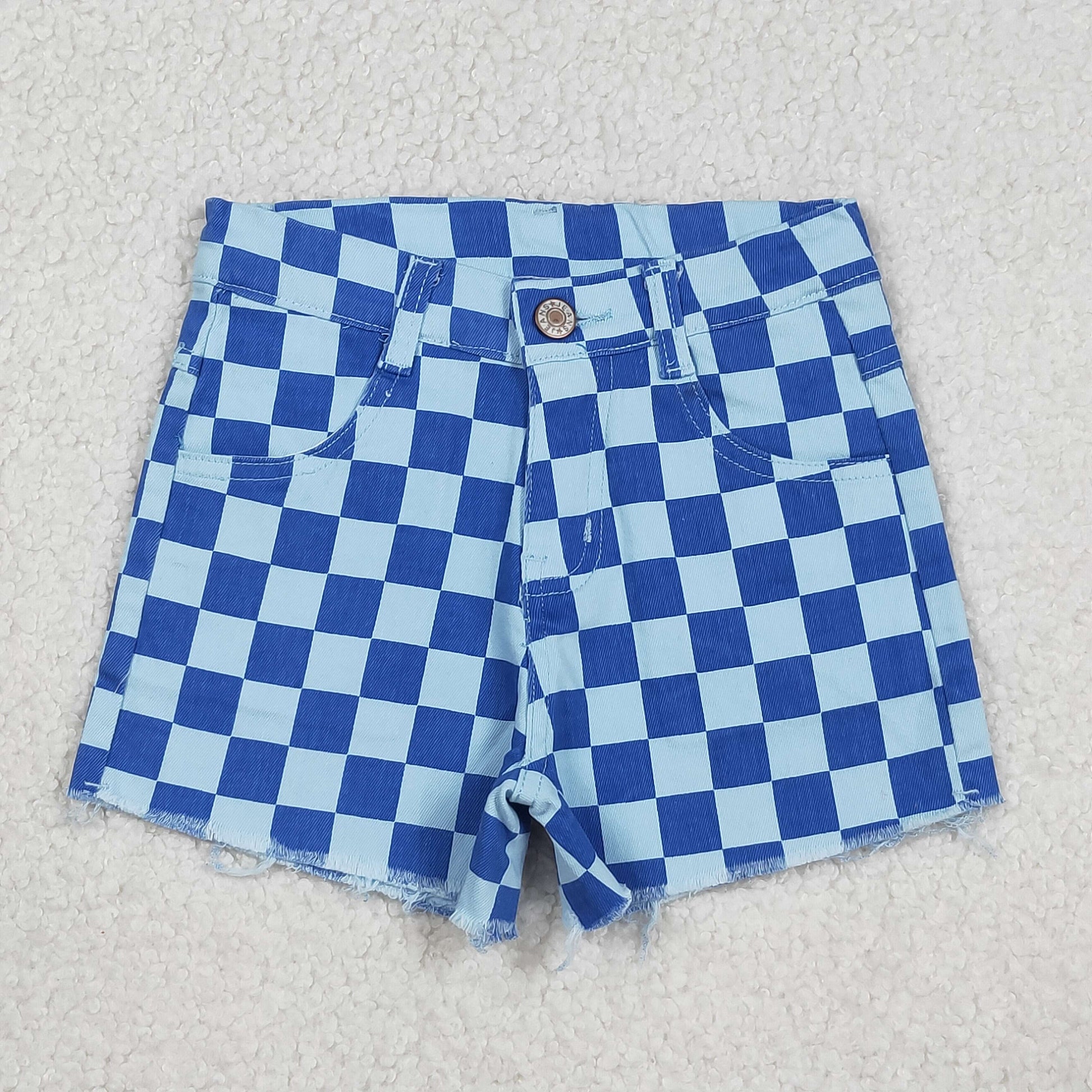 SS0763 Blue Plaid Denim Girls Summer Bottom Shorts