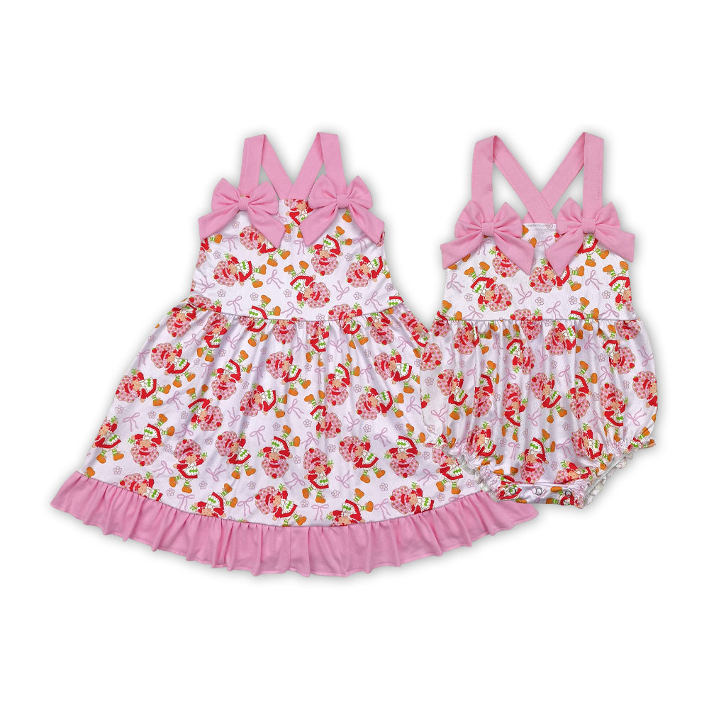 Strawberry Girl Flowers Bows Print Sisters Summer Matching Clothes