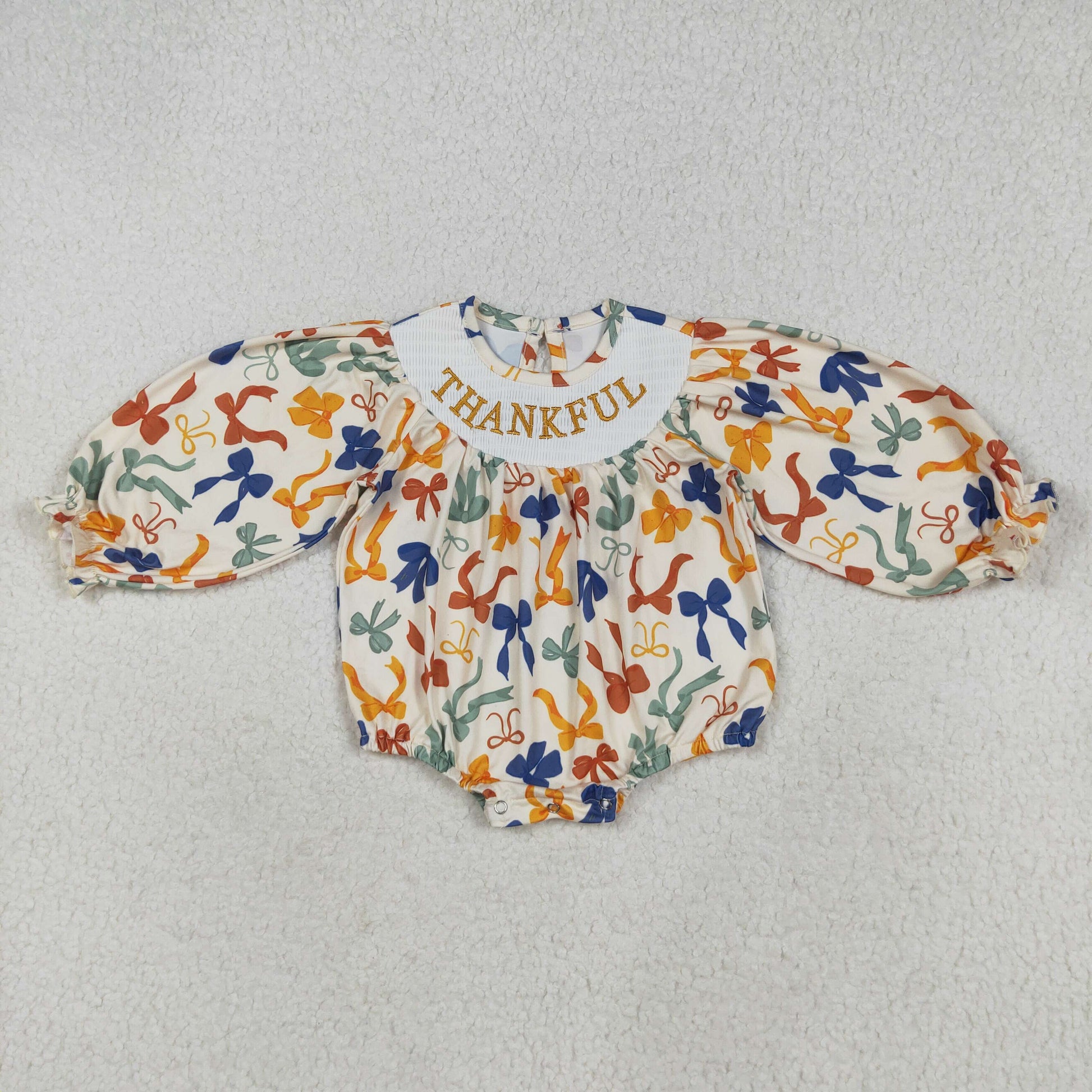 Thankful Embroidery Colorful Bows Sisters Thanksgiving Smocked Matching Clothes