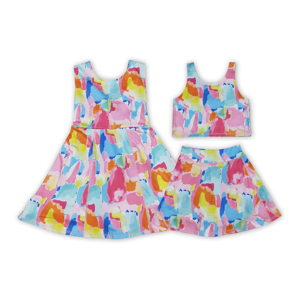 Tie-dye Print Girls Summer Yoga Clothes Sisters Wear